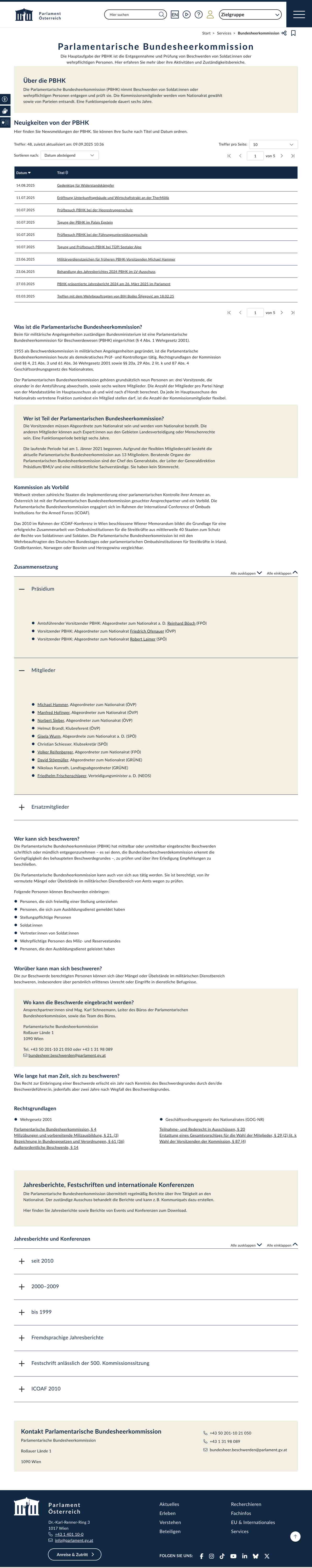 Quelle: Bundesheer Kommission; Parlament (Zugriff: 09.09.2025) Screenshot/Dokument: screencapture-parlament-gv-at-services-bundesheerkommission-2025-09-09-10_38_06.jpg