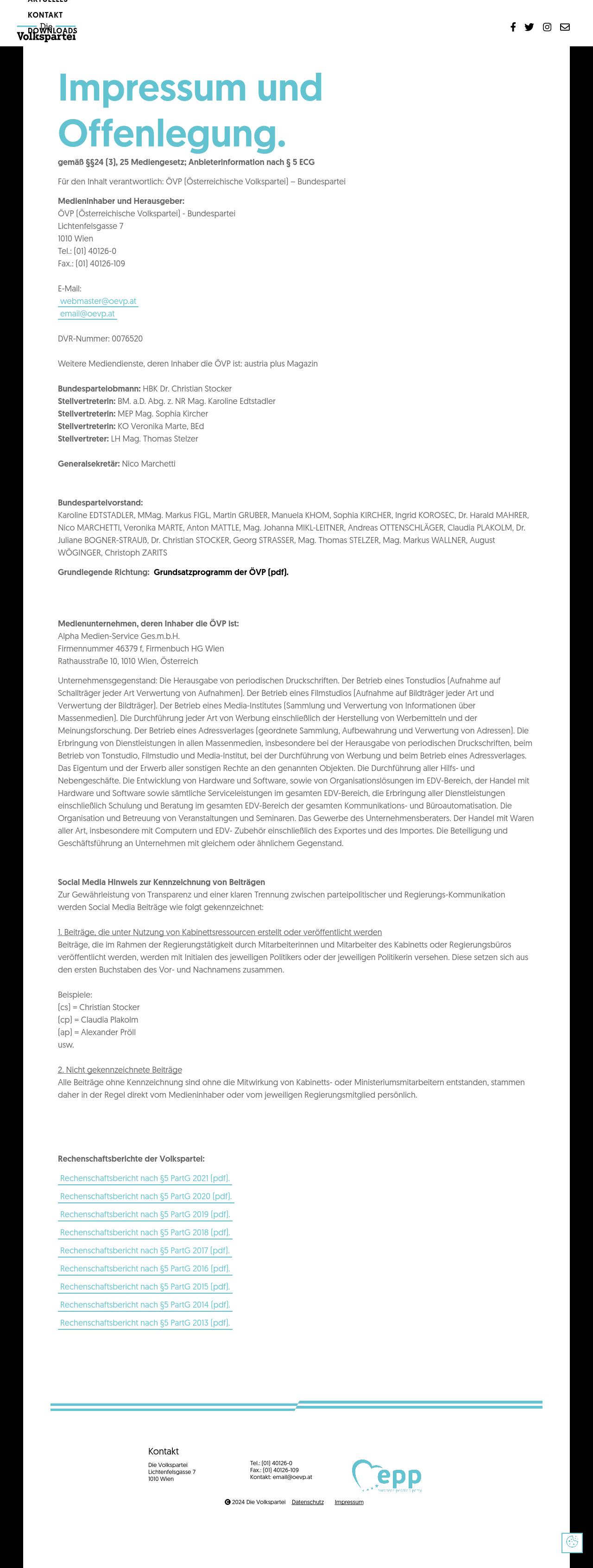 Quelle: ÖVP (Zugriff: 05.01.2023) Screenshot/Dokument: screencapture-dievolkspartei-at-Impressum-2023-01-05-10_55_26.png