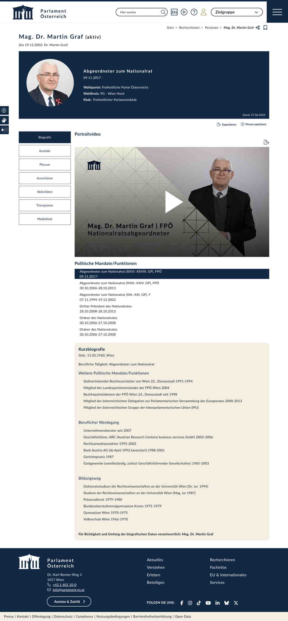 Quelle: Persönliche Seite; Parlament (Zugriff: 24.07.2023) Screenshot/Dokument: screencapture-parlament-gv-at-person-2834-2023-07-24-11_33_53.jpg