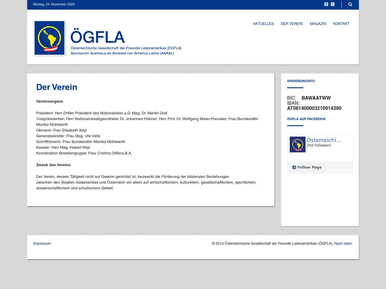 Quelle: Österreichische Gesellschaft der Freunde Lateinamerikas (ÖGFLA) (Zugriff: 30.08.2017) Screenshot/Dokument: Österreichische Gesellschaft der Freunde Lateinamerikas (ÖGFLA)