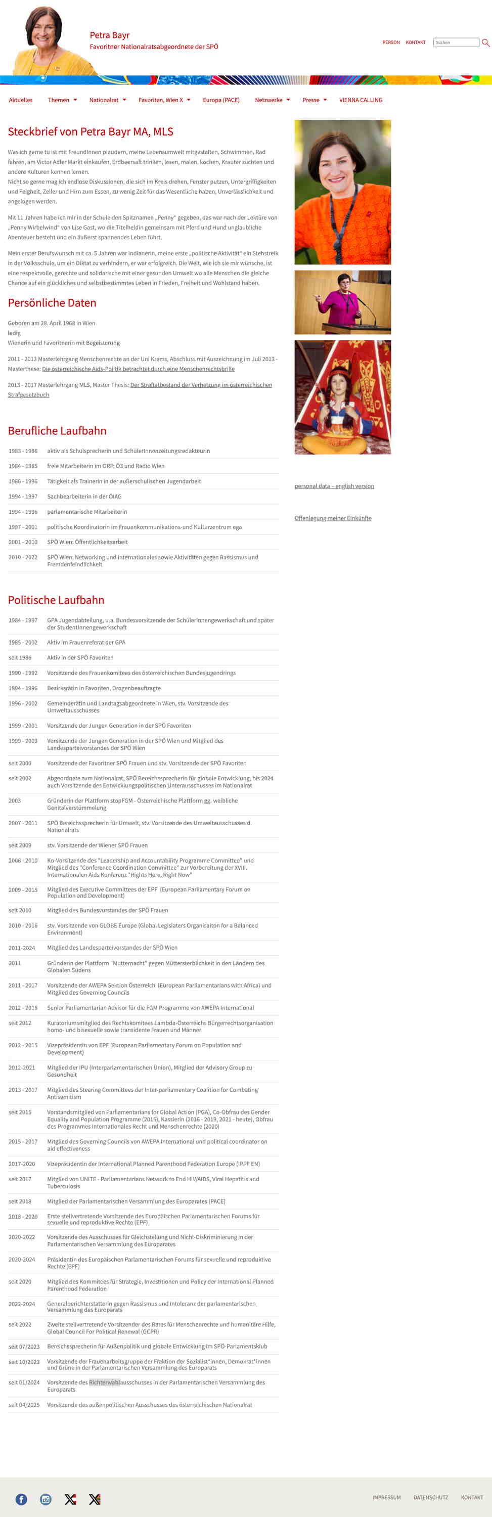 Quelle: Persönliche Webseite (Zugriff: 02.10.2025) Screenshot/Dokument: screencapture-petrabayr-at-person-2025-10-02-10_25_59.jpg