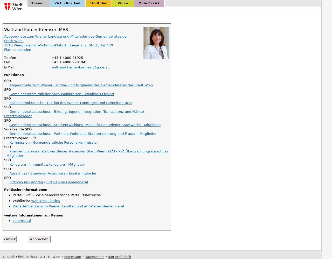 Quelle: Persönliche Seite; wien.gv.at (Zugriff: 28.08.2025) Screenshot/Dokument: www.wien.gv.at_2025-08-28_9266.jpg