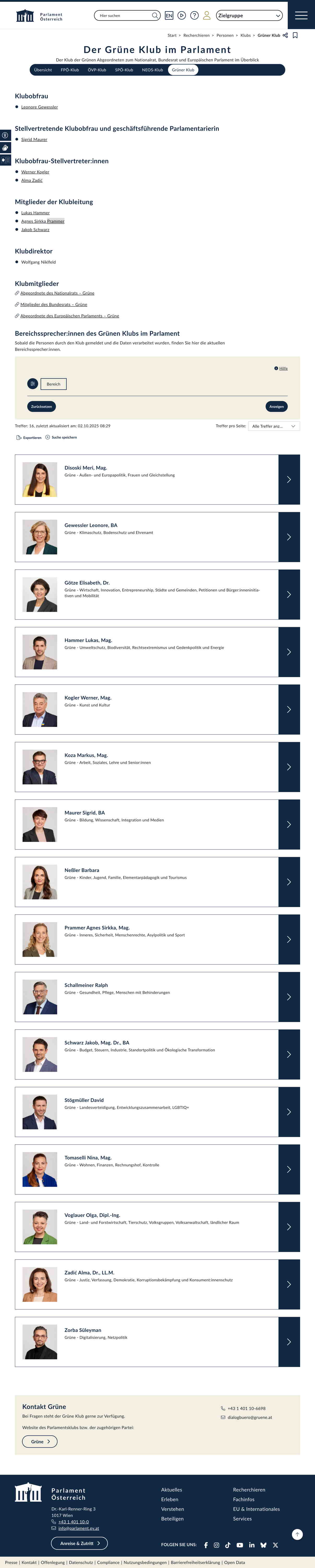 Grüner Parlamentsklub, Klubleitung - Mitglied