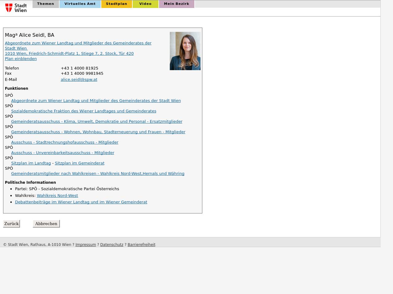Quelle: Persönliche Seite; wien.gv.at (Zugriff: 29.08.2025) Screenshot/Dokument: www.wien.gv.at_2025-08-29_7628.jpg