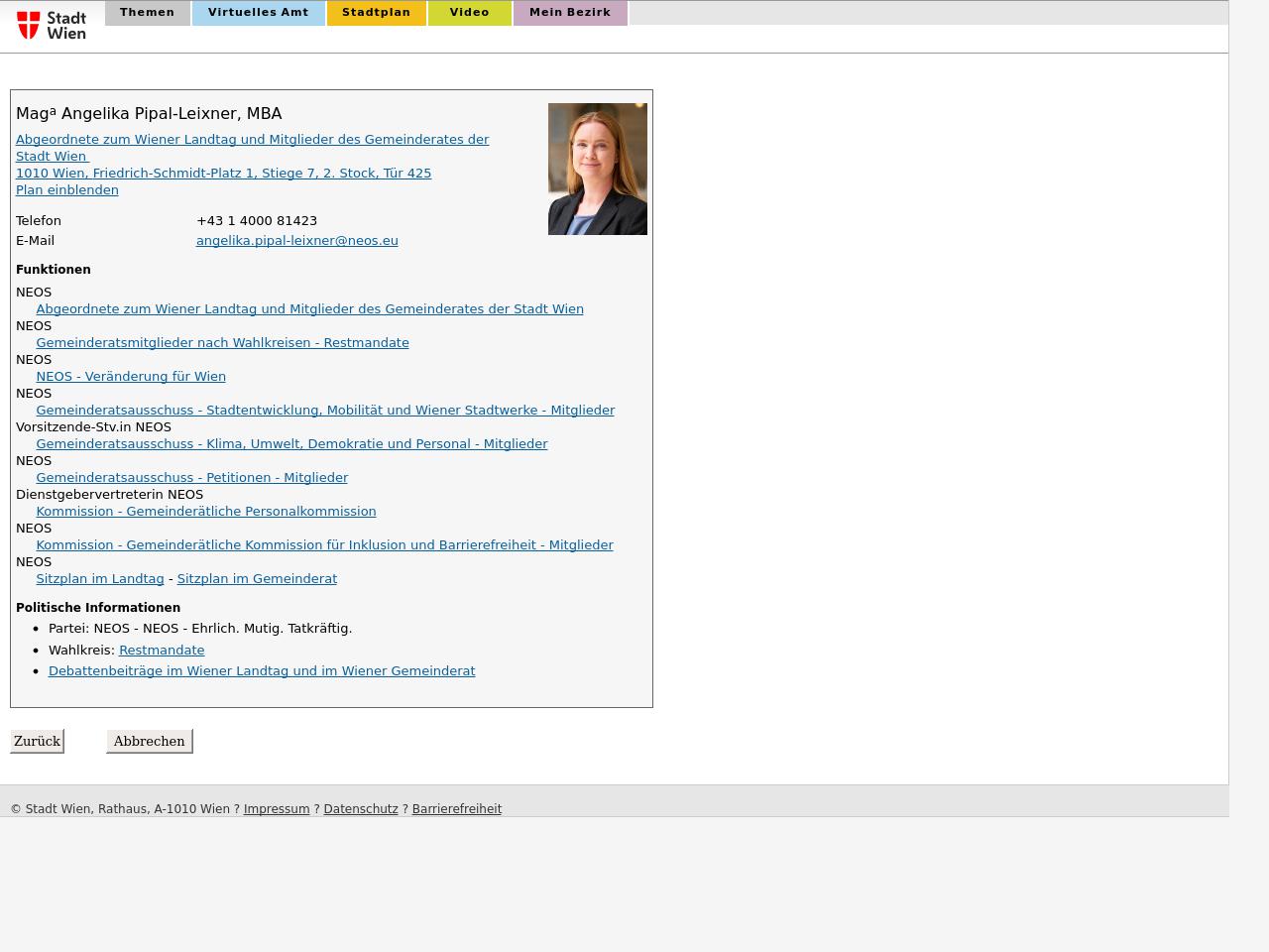 Quelle: Persönliche Seite; wien.gv.at (Zugriff: 28.08.2025) Screenshot/Dokument: www.wien.gv.at_2025-08-28_3054.jpg