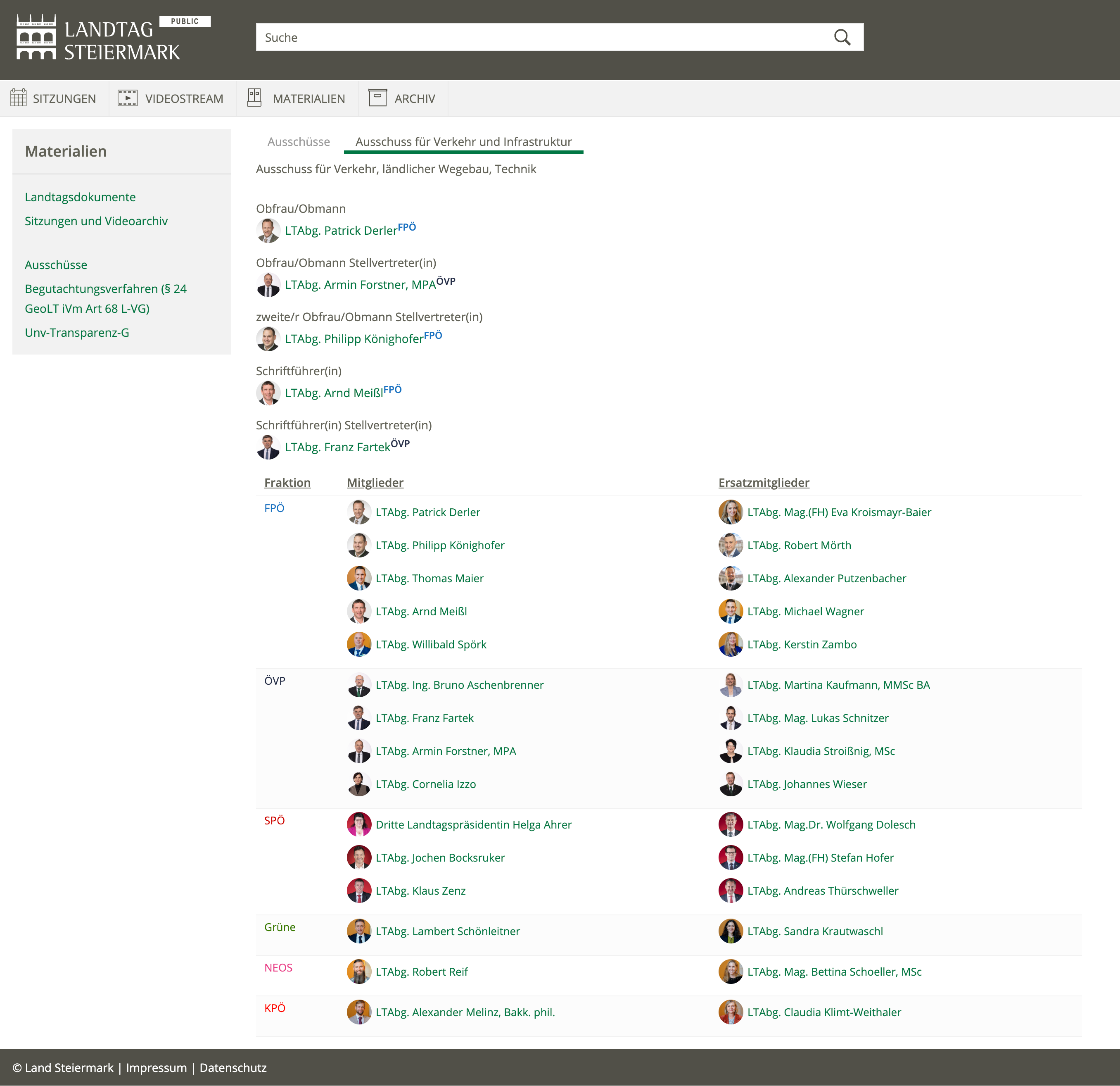 Quelle: Ausschuss für Verkehr, ländlicher Wegebau, Technik (Zugriff: 27.10.2025) Screenshot/Dokument: screencapture-pallast2-stmk-gv-at-pallast-p-pub-committees-2025-10-27-11_30_23.png
