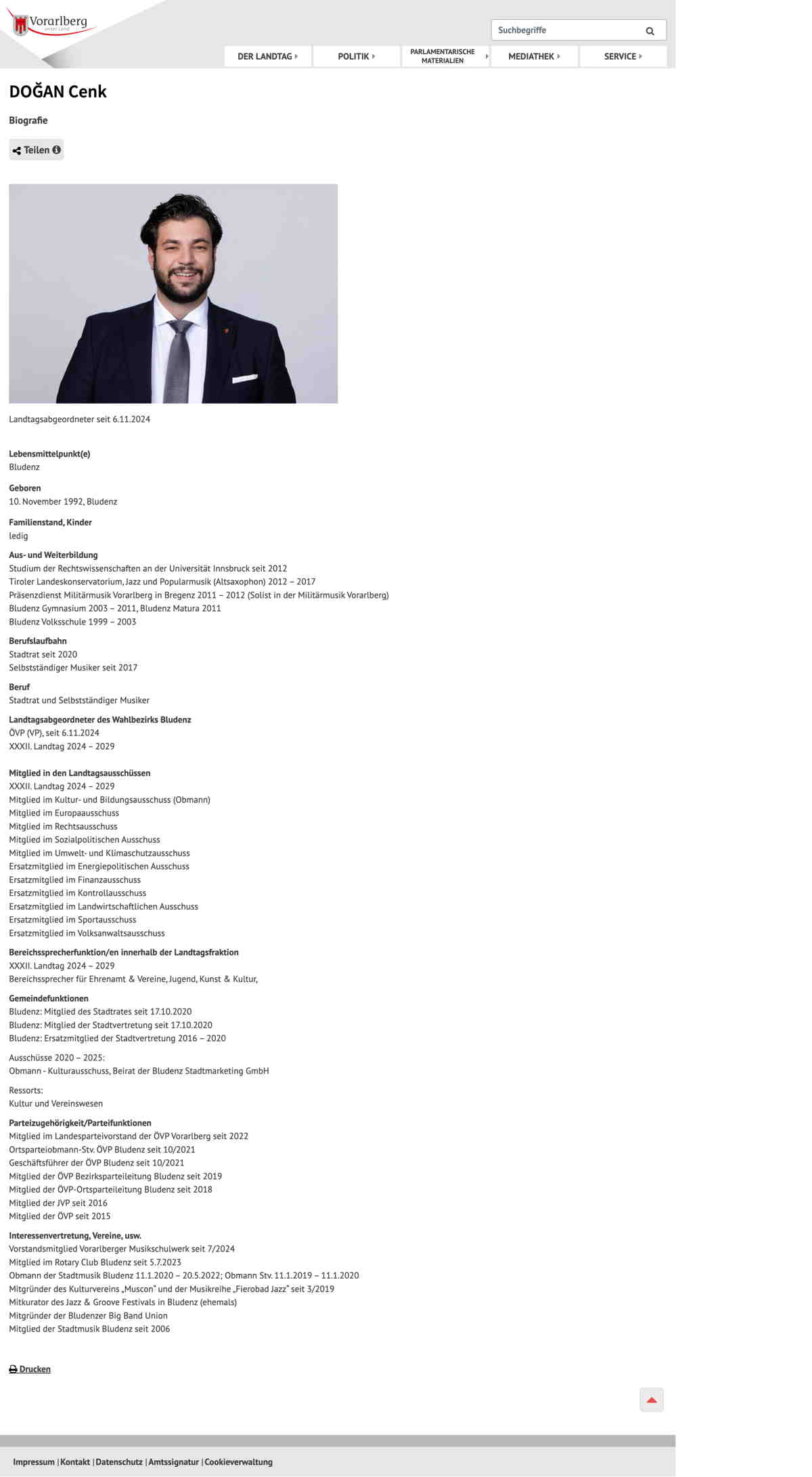 Quelle: Persönliche Seite; LTG V (Zugriff: 19.01.2026) Screenshot/Dokument: screencapture-vorarlberg-at-web-landtag-dogan-cenk-bio-2026-01-19-13_18_41.jpg