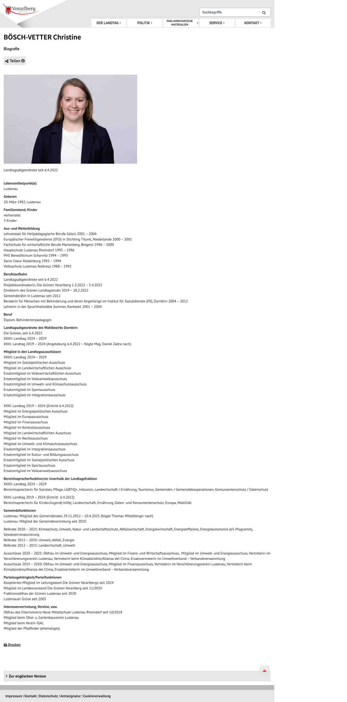 Quelle: Biographie; LTG V (Zugriff: 13.01.2026) Screenshot/Dokument: screencapture-vorarlberg-at-web-landtag-bosch-vetter-christine-biografie-2026-01-13-10_56_02.jpg