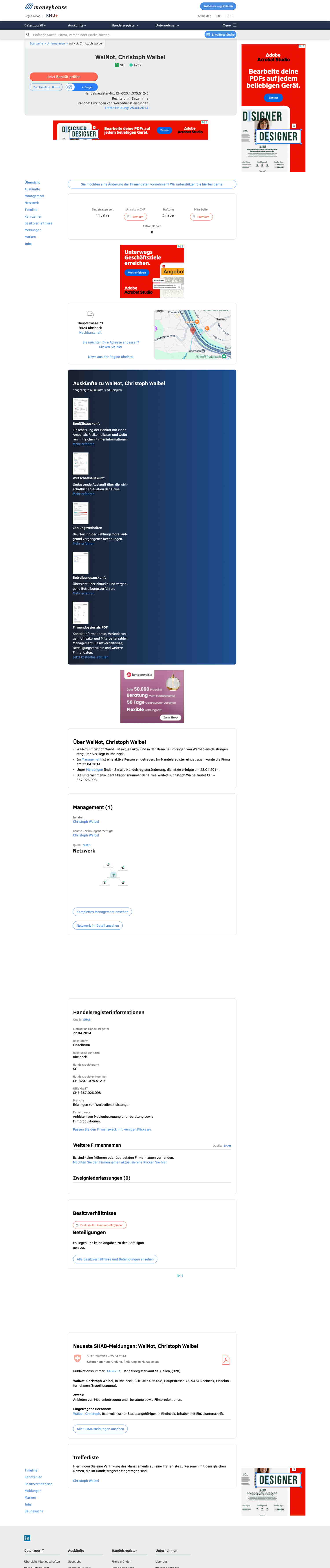 Quelle: Moneyhouse (Zugriff: 24.02.2026) Screenshot/Dokument: screencapture-moneyhouse-ch-de-company-wainot-christoph-waibel-5206940011-2026-02-24-12_03_02.jpg