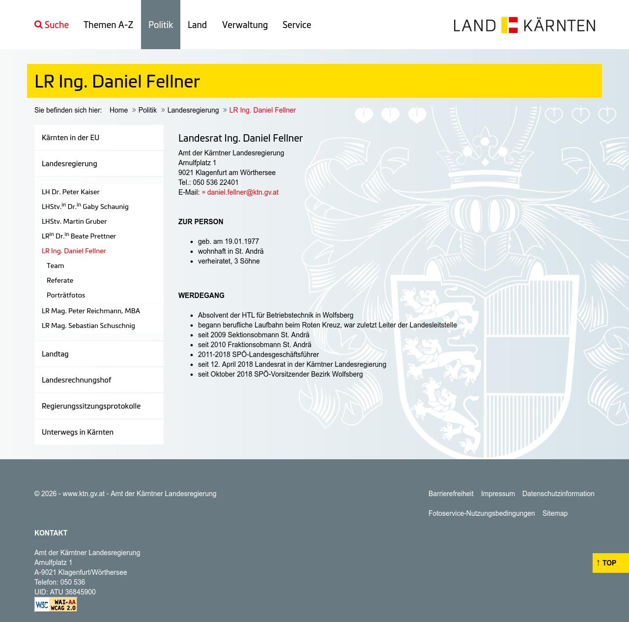 Quelle: Persönliche Seite; Land Kärnten (Zugriff: 23.01.2023) Screenshot/Dokument: screencapture-ktn-gv-at-politik-landesregierung-lr-ing-daniel-fellner-2023-01-23-10_21_37.jpg