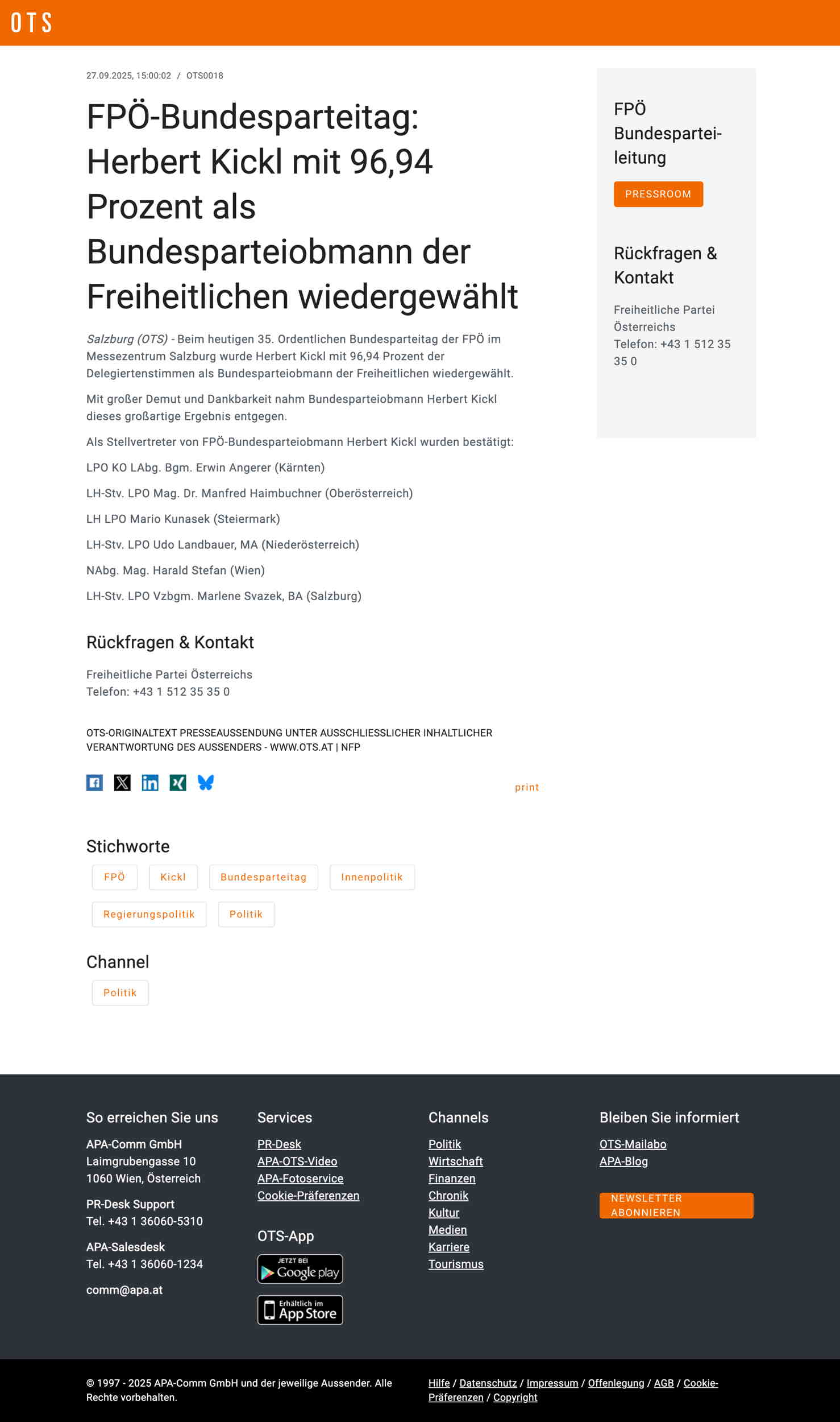 Quelle: OTS (Zugriff: 27.09.2025) Screenshot/Dokument: screencapture-ots-at-presseaussendung-ots-20250927-ots0018-fpoe-bundesparteitag-herbert-kickl-mit-9694-prozent-als-bundesparteiobmann-der-freiheitlichen-wiedergewaehlt-2025-09-27-17_11_04.jpg
