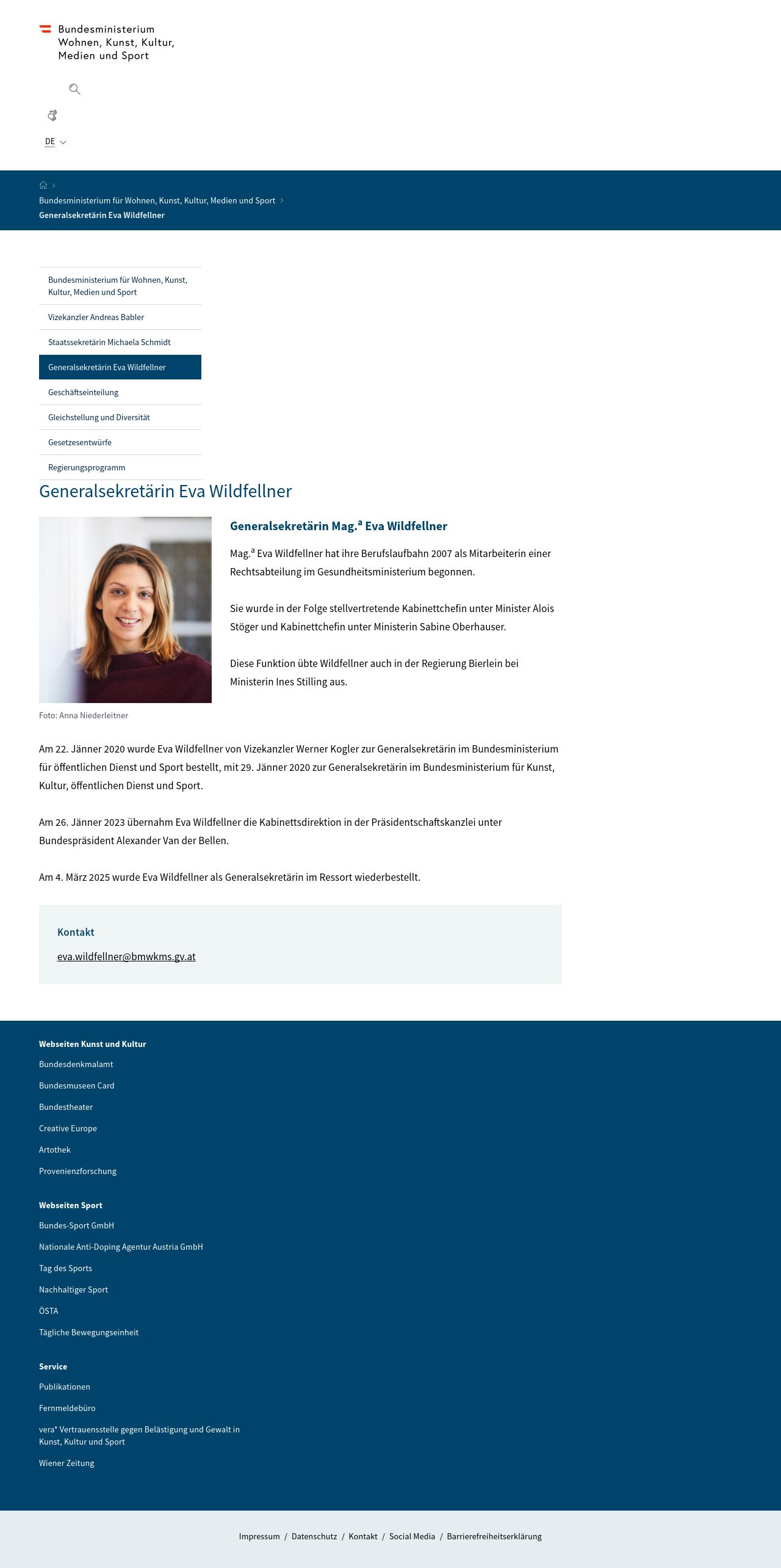 Bundesministerium für Wohnen, Kunst, Kultur, Medien und Sport; Generalsekretärin