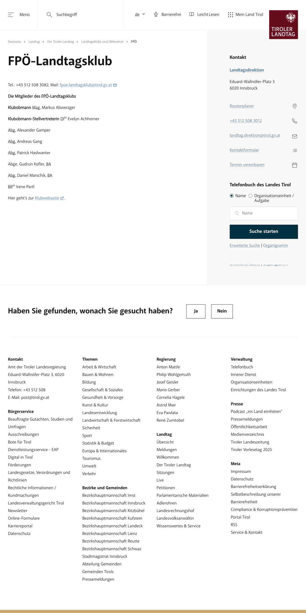 Quelle: Klubseite Tirol (Zugriff: 25.10.2022) Screenshot/Dokument: screencapture-tirol-gv-at-landtag-unser-parlament-landtagsklubs-und-obleuterat-fpoe-2022-10-25-12_53_52.png