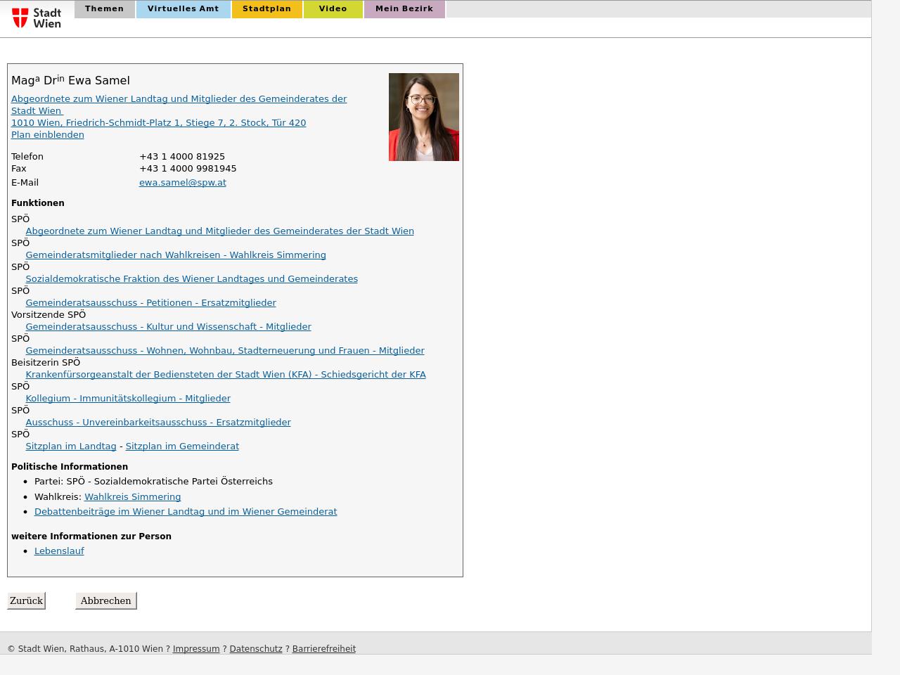 Quelle: Persönliche Webseite; wien.gv.at (Zugriff: 28.08.2025) Screenshot/Dokument: www.wien.gv.at_2025-08-28_5019.jpg