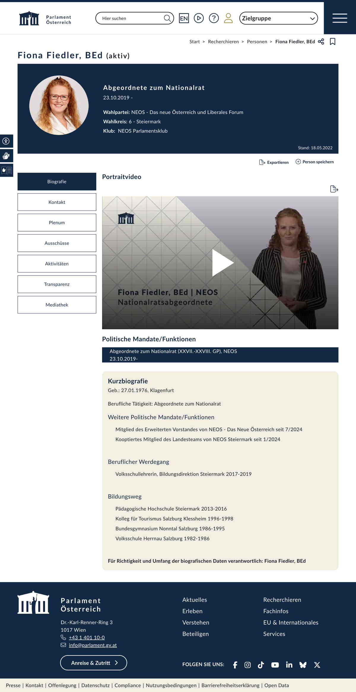 Quelle: Persönliche Seite; Parlament (Zugriff: 20.10.2025) Screenshot/Dokument: screencapture-parlament-gv-at-person-5684-2025-10-20-14_11_55.jpg