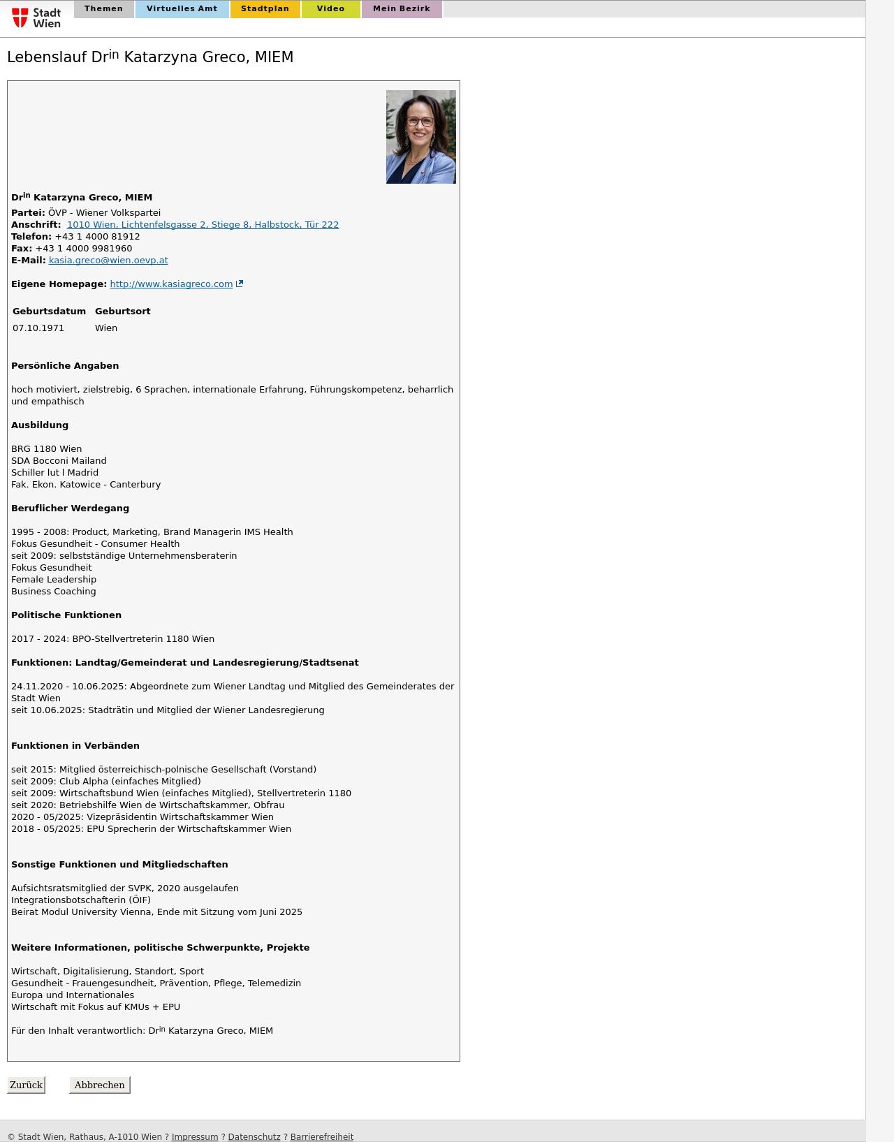 Quelle: Persönliche Seite; wien.gv.at (Zugriff: 29.08.2025) Screenshot/Dokument: www.wien.gv.at_2025-08-29_6052.jpg