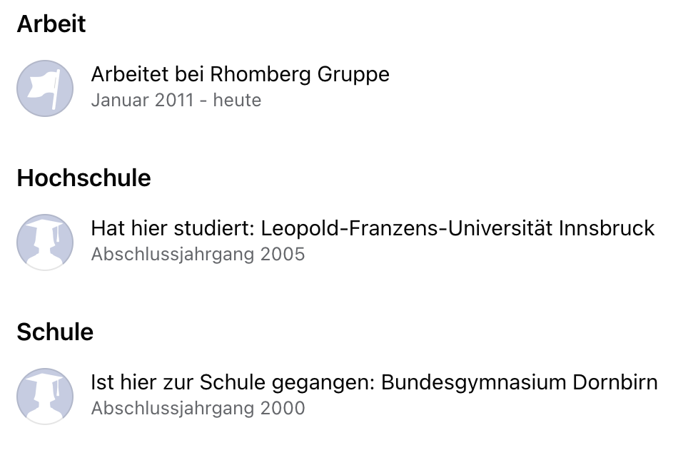Praktika und Militärdienste wurden grösstenteils dem Block "Ausbildung" zugeordnet. Da die Grenze zwischen "Ausbildung" und "Beruflichen Tätigkeiten" oft fliessend ist können manche auch unter "Berufliche Tätigkeiten" zu finden sein.
