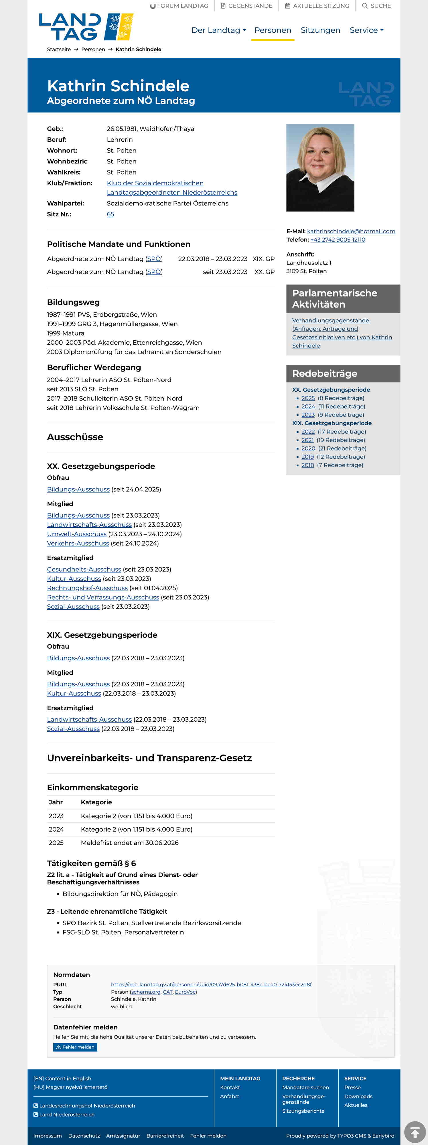 Quelle: Persönliche Seite; LTG NÖ (Zugriff: 08.09.2025) Screenshot/Dokument: screencapture-noe-landtag-gv-at-personen-kathrin-schindele-2025-09-08-08_40_36.jpg
