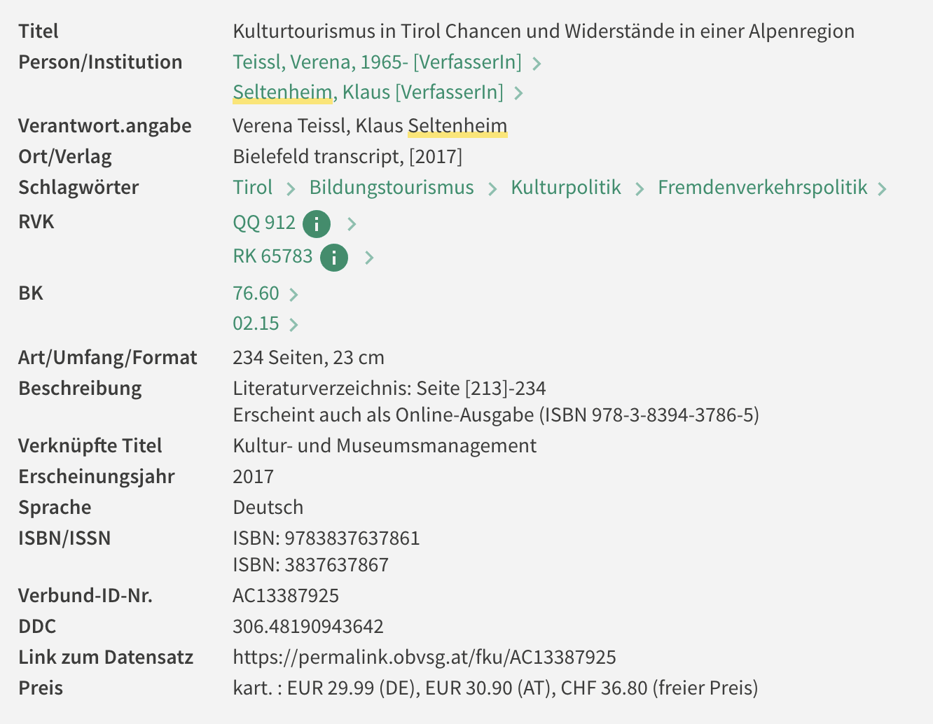 Co-Autor: "Kulturtourismus in Tirol - Chancen und Widerstände in einer Alpenregion" (2017)