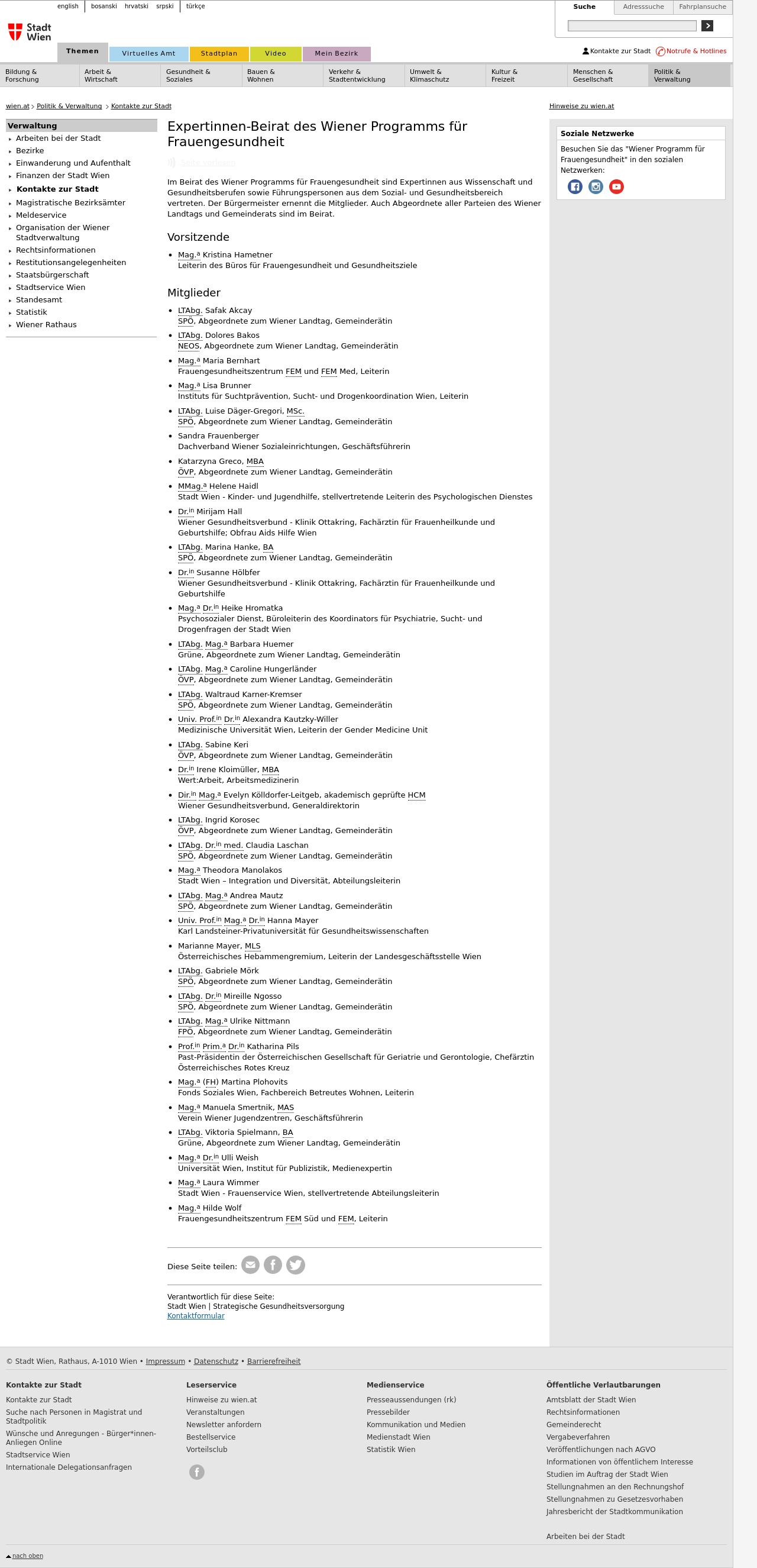 Wiener Programm für Frauengesundheit; Expertinnen-Beirat