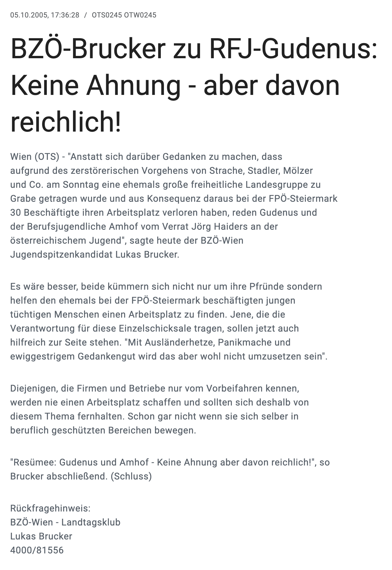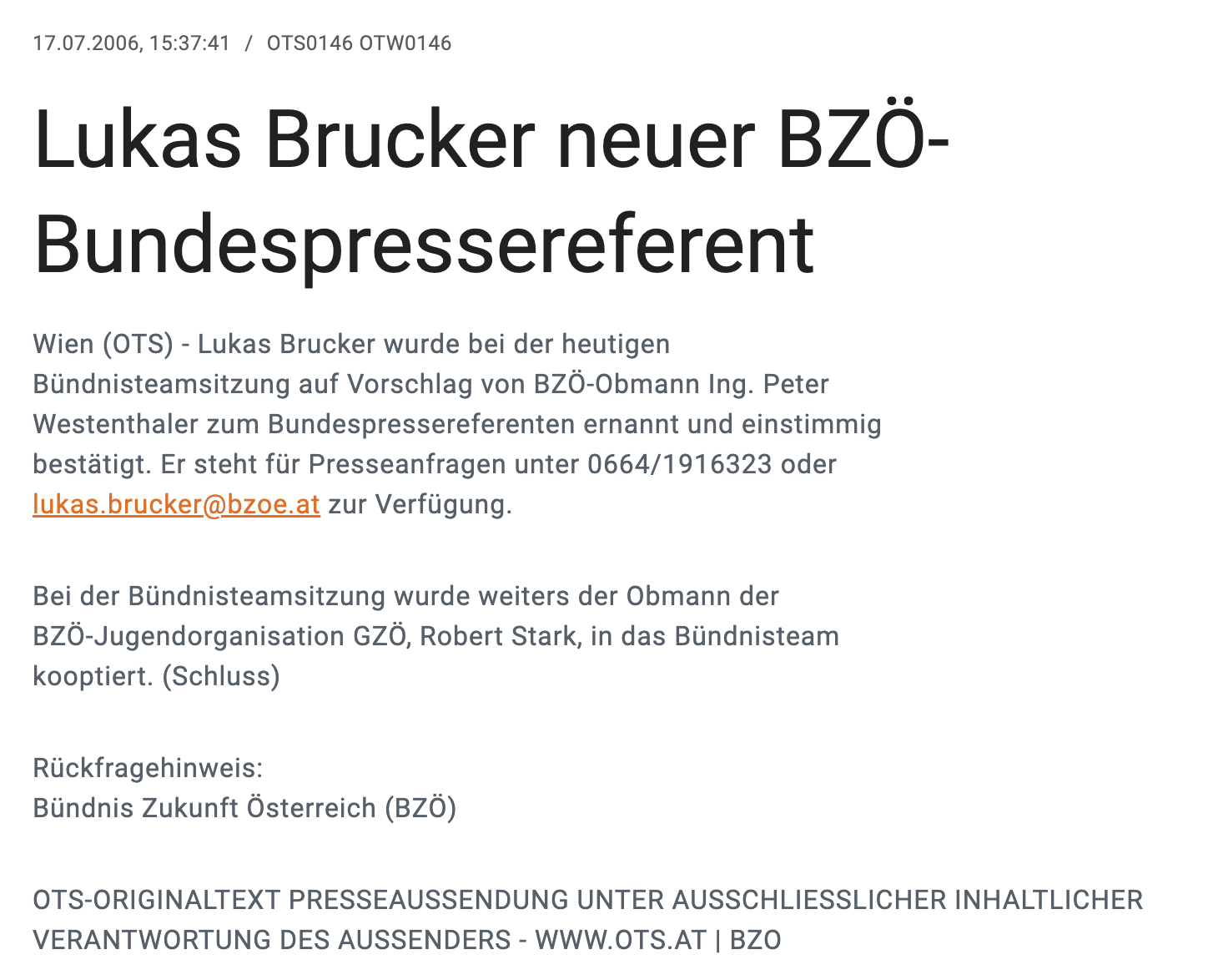 Mitarbeiter des Landtagsklubs des BZÖ Wien ("Jugendspitzenkandidat")