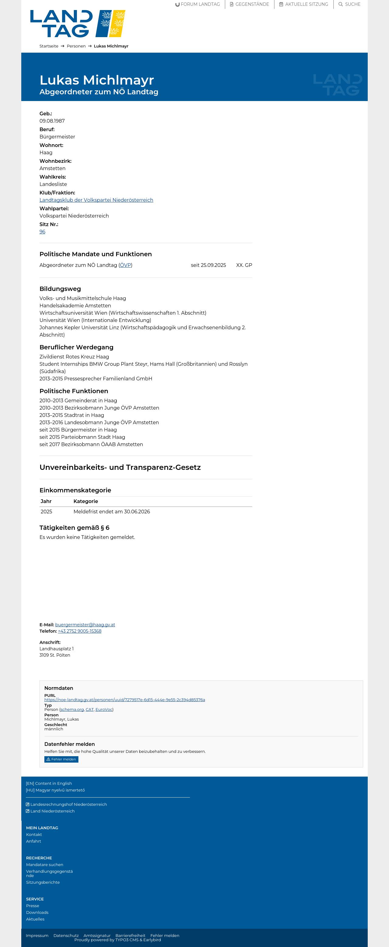 Quelle: Persönliche Seite; LTG NÖ (Zugriff: 25.09.2025) Screenshot/Dokument: noe-landtag.gv.at_2025-09-25_7229.jpg