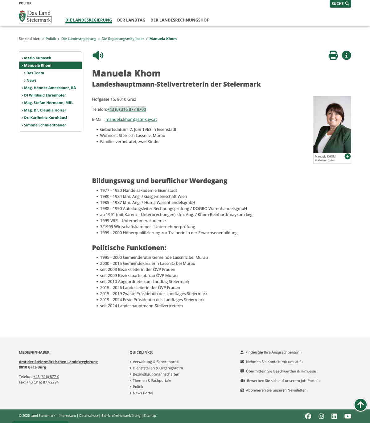 Quelle: Steirischer ÖVP Klub (Zugriff: 13.07.2021) Screenshot/Dokument: screencapture-klub-stvp-at-abgeordnete-manuela-khom-2021-07-13-14_09_29.jpg