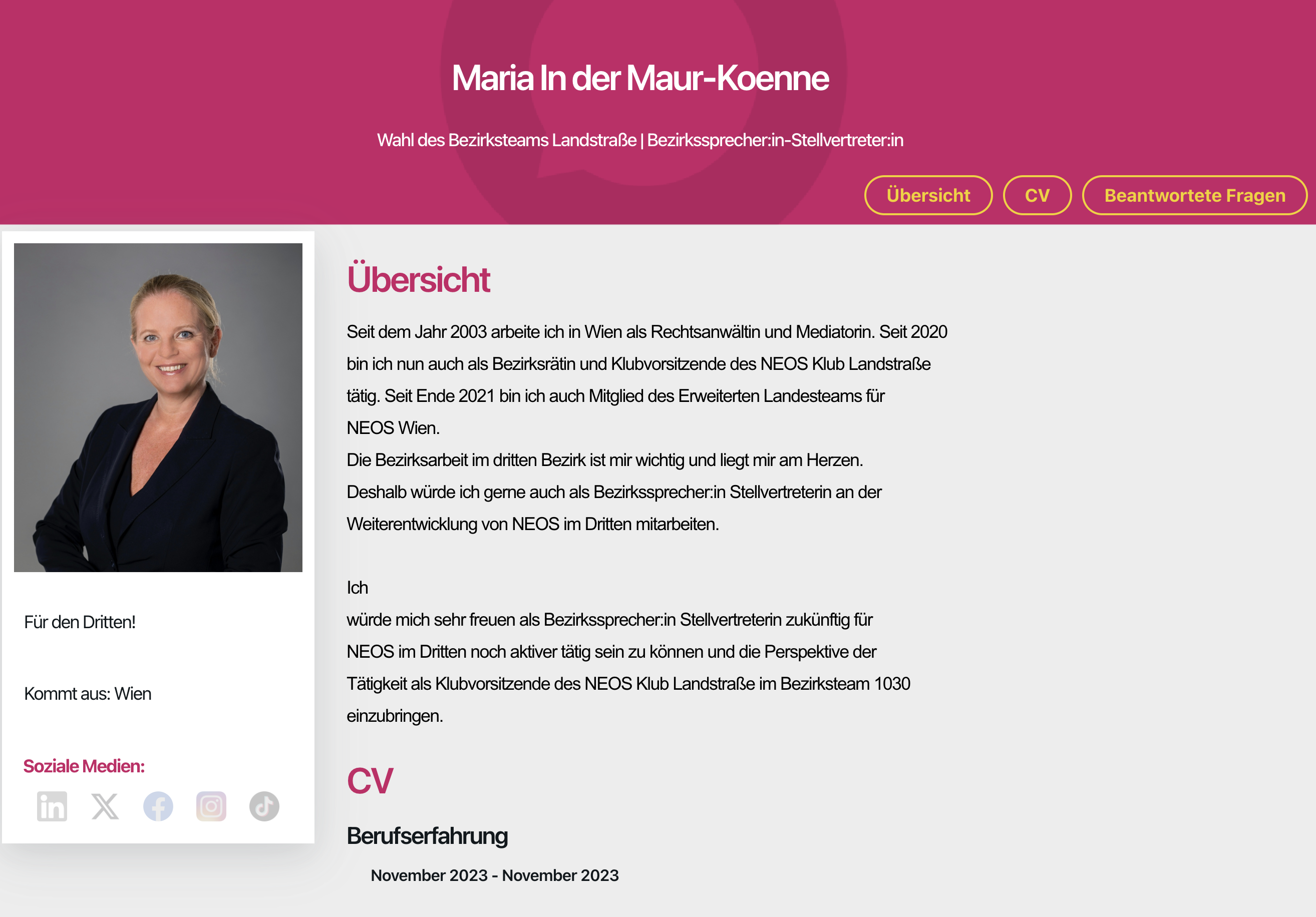 Quelle: NEOS Vorwahlen 2 (Zugriff: 30.03.2025) Screenshot/Dokument: Neos Vorwahl Profil 2.pdf