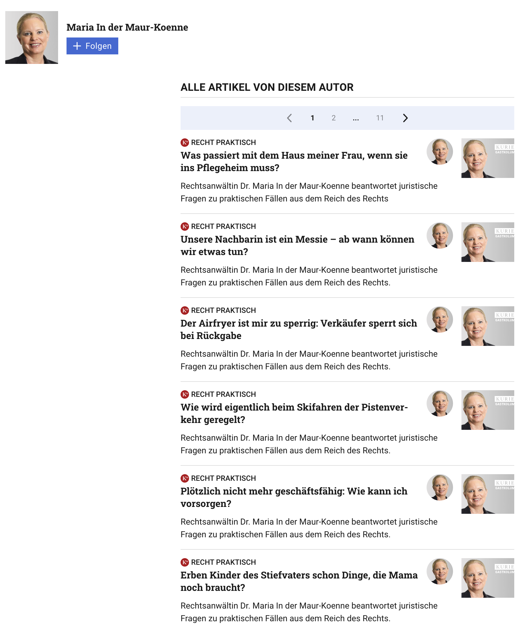 Autorin der wöchentlichen Rechtskolumne „Recht praktisch“ im KURIER