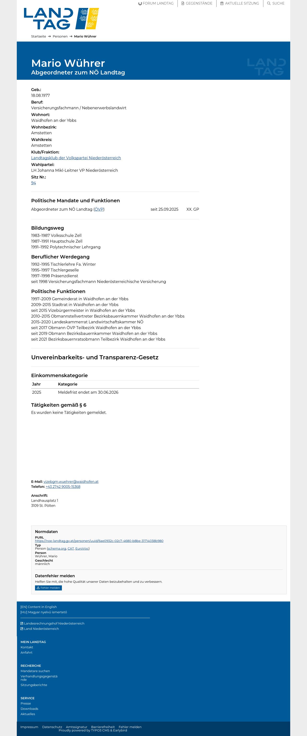 Quelle: Persönliche Seite; LTG NÖ (Zugriff: 25.09.2025) Screenshot/Dokument: noe-landtag.gv.at_2025-09-25_3527.jpg