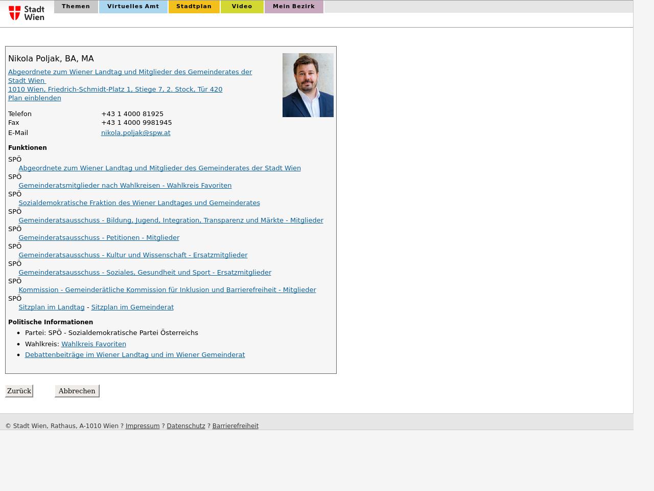 Quelle: Persönliche Seite; wien.gv.at (Zugriff: 28.08.2025) Screenshot/Dokument: www.wien.gv.at_2025-08-28_4426.jpg
