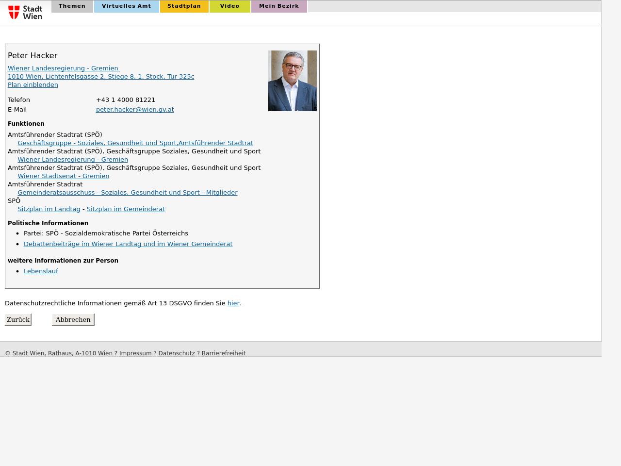 Quelle: Persönliche Seite; wien.gv.at (Zugriff: 29.08.2025) Screenshot/Dokument: www.wien.gv.at_2025-08-29_9018.jpg