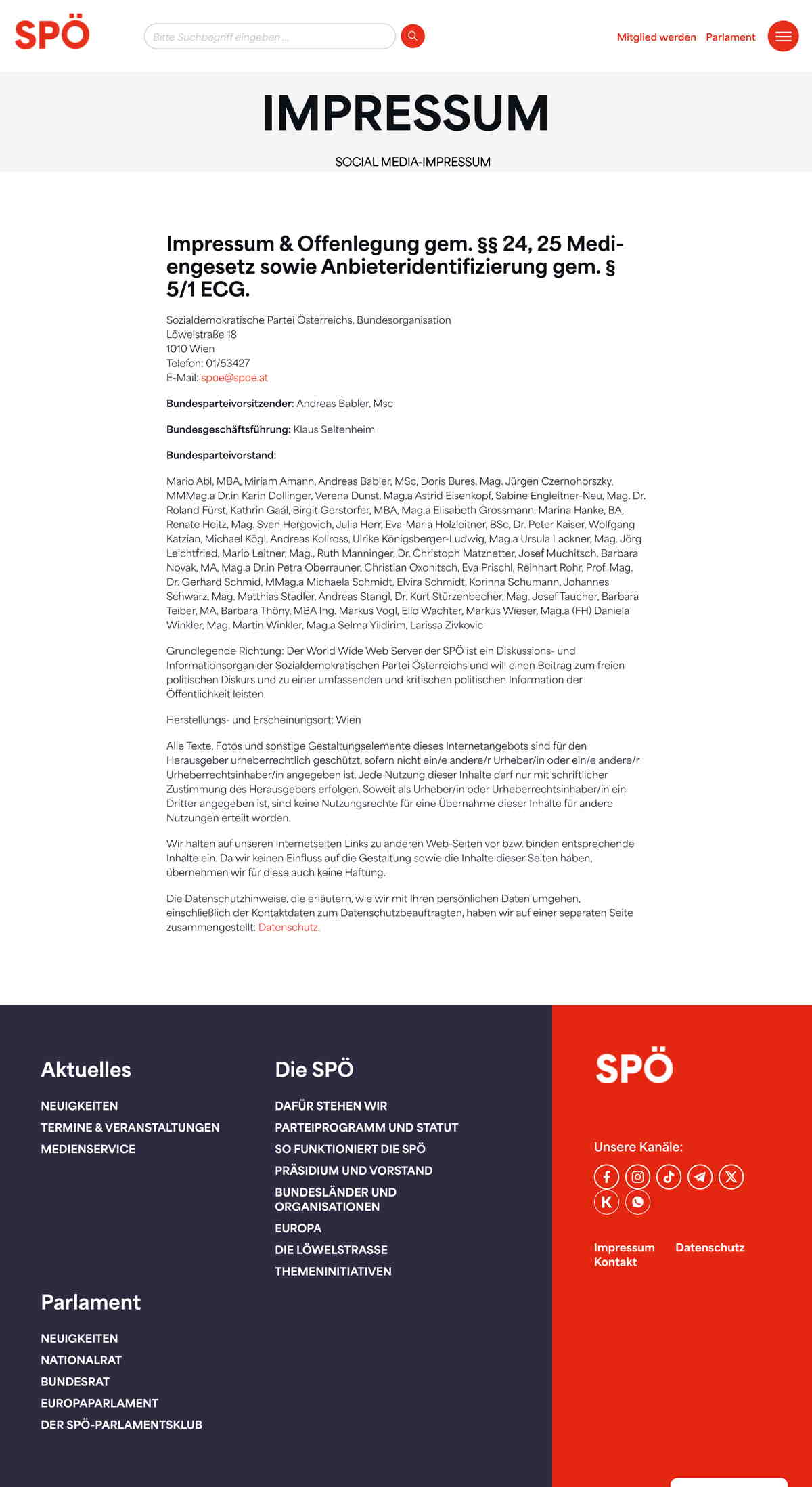 Quelle: SPÖ (Zugriff: 08.12.2025) Screenshot/Dokument: screencapture-spoe-at-impressum-2025-12-08-11_04_15.jpg