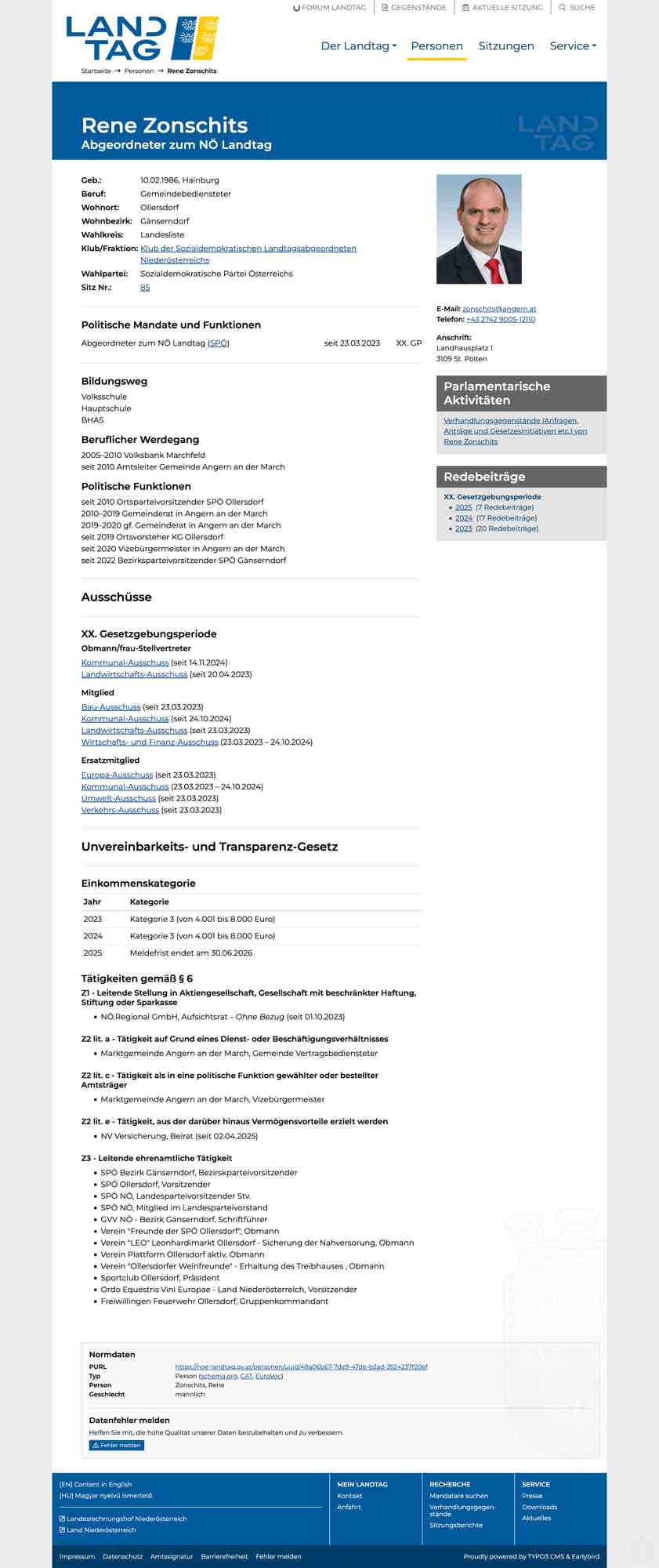 Quelle: Persönliche Seite; LTG NÖ (Zugriff: 15.07.2025) Screenshot/Dokument: screencapture-noe-landtag-gv-at-personen-rene-zonschits-2025-07-15-15_47_23.jpg