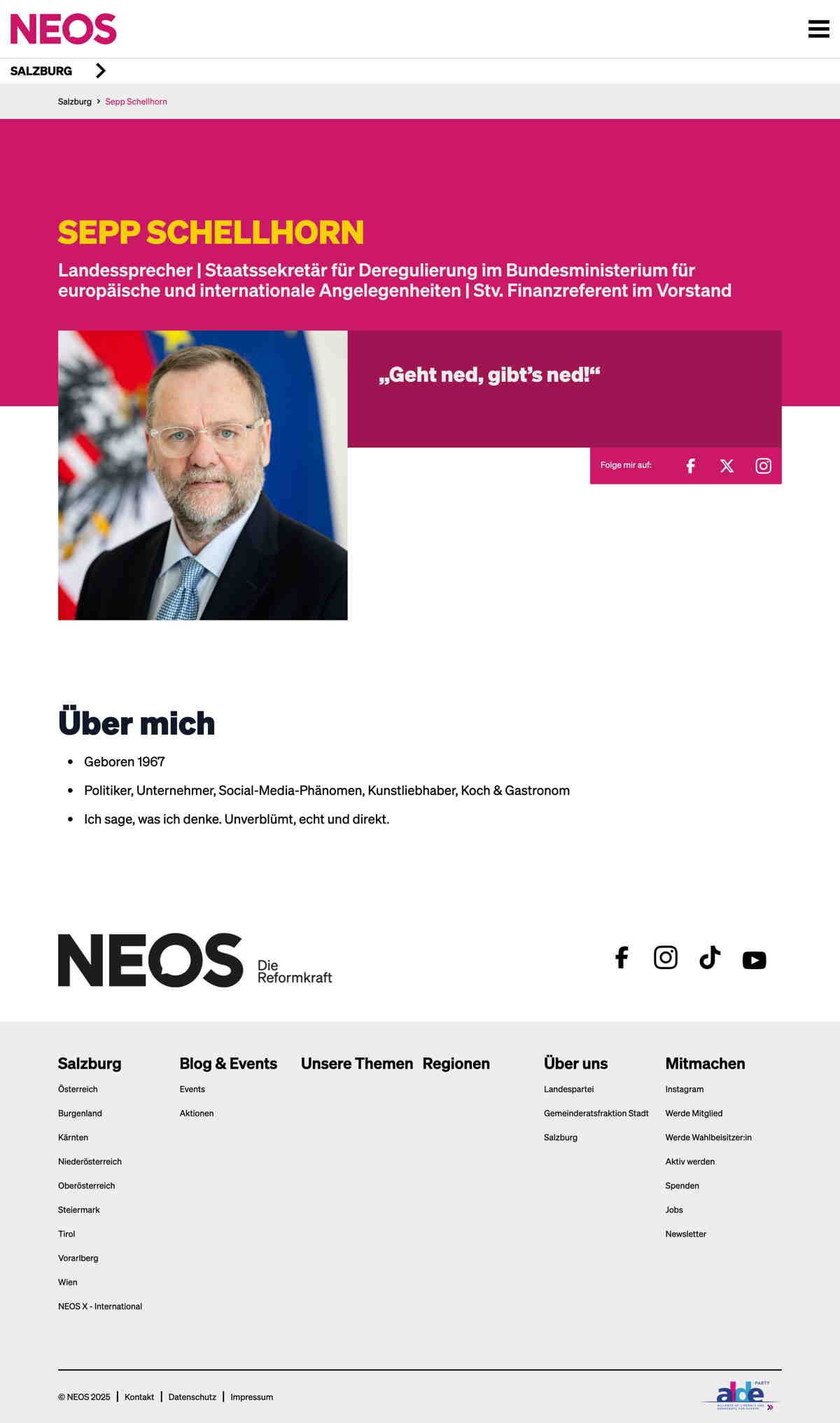 Quelle: NEOS Salzburg (Zugriff: 20.10.2025) Screenshot/Dokument: screencapture-salzburg-neos-eu-personen-sepp-schellhorn-2025-10-20-13_08_13.jpg