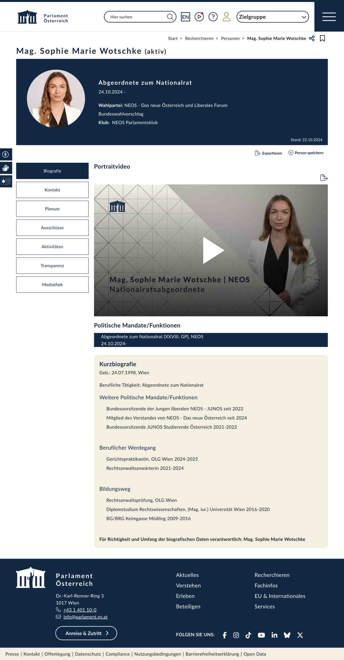 Quelle: Persönliche Seite; Parlament (Zugriff: 04.12.2025) Screenshot/Dokument: screencapture-parlament-gv-at-person-30685-2025-12-04-12_50_26.jpg