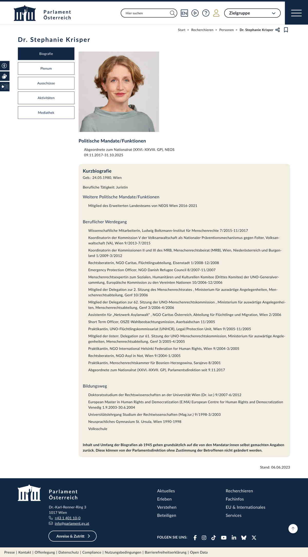 Quelle: Persönliche Seite; Parlament (Zugriff: 01.11.2025) Screenshot/Dokument: screencapture-parlament-gv-at-person-2344-2025-11-01-08_17_02.jpg
