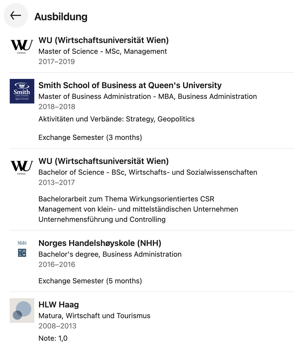 Quelle: LinkedIn - Berufserfahrung (Zugriff: 27.03.2025) Screenshot/Dokument: (6) Berufserfahrung _ Theresa Schneckenreither _ LinkedIn.pdf