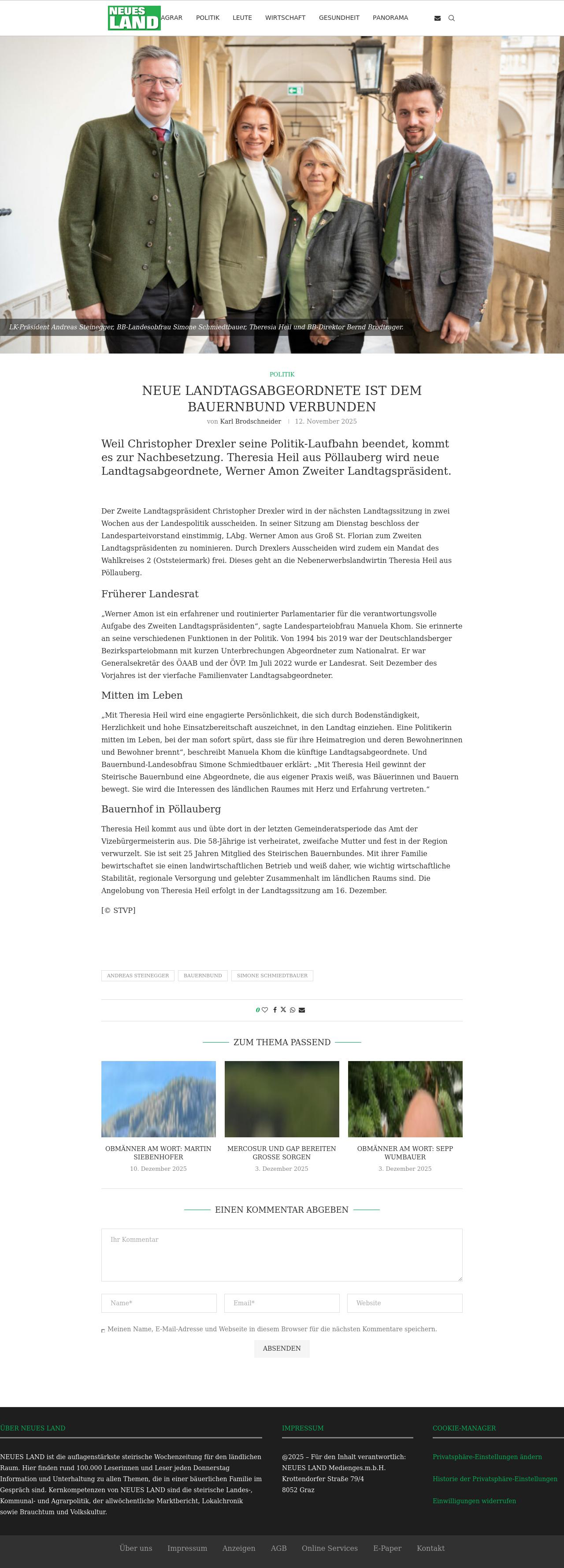 Quelle: Neues Land (Zugriff: 15.12.2025) Screenshot/Dokument: neuesland.at_2025-12-15_1902.jpg