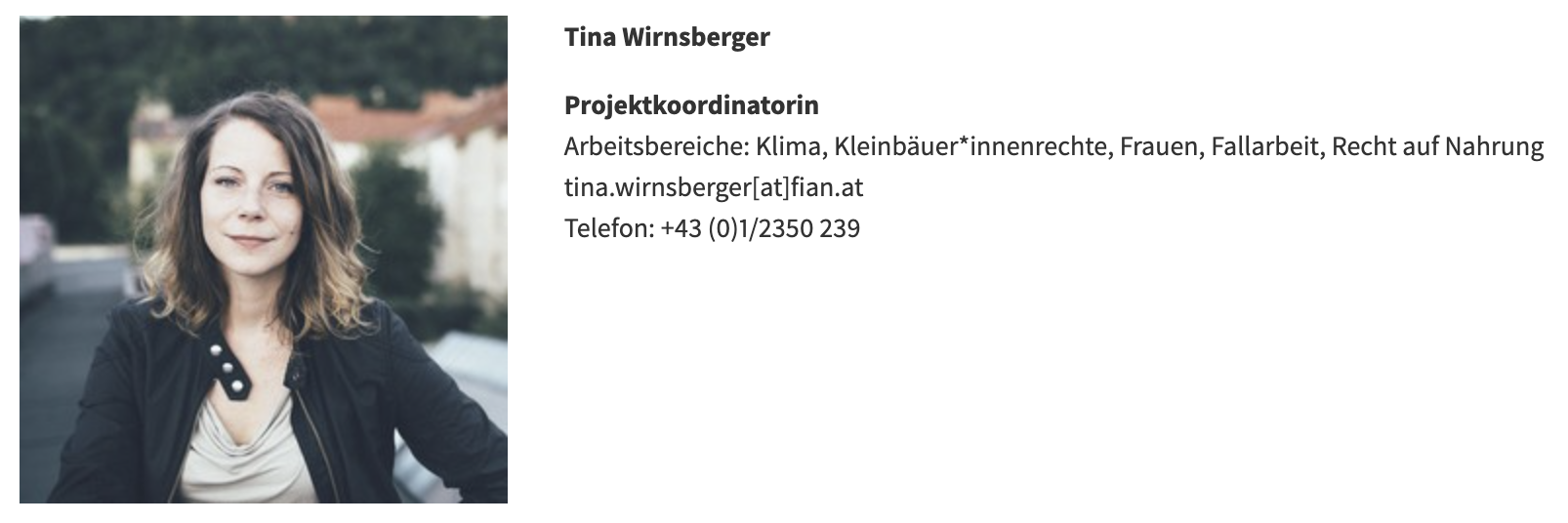 Referentin für Klima, Frauen und kleinbäuerliche Rechte bei FIAN Österreich
