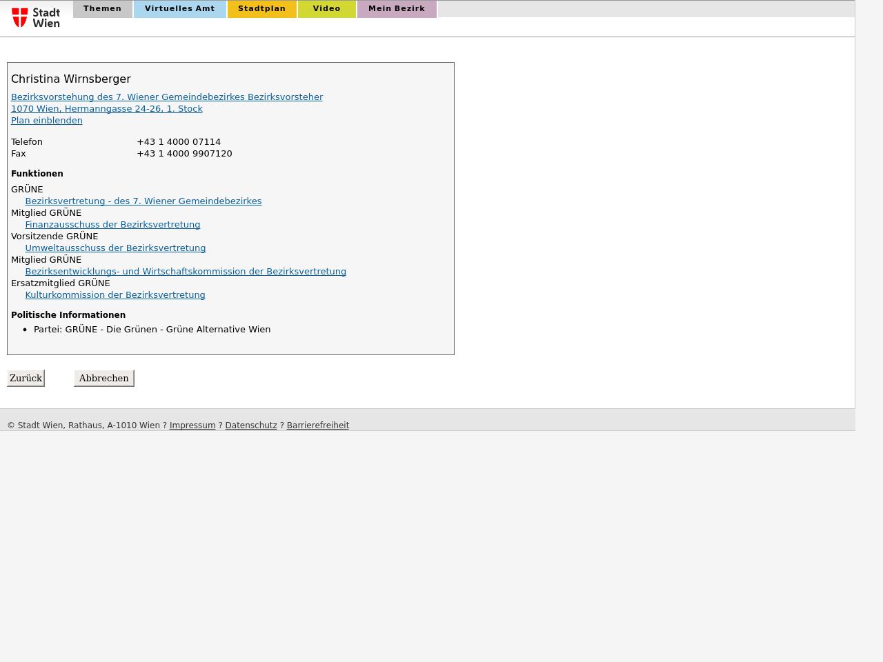 Quelle: Persönliche Seite; wien.gv.at (Zugriff: 29.08.2025) Screenshot/Dokument: www.wien.gv.at_2025-08-29_8412.jpg