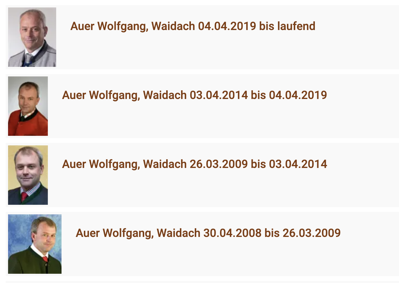 In dieser Rubrik listen wir alle historischen und aktuellen Mandate und Exekutivfunktionen im österreichischen Parlament (Nationalrat, Bundesrat und Bundesregierung), im Europaparlament, in Landtagen und Landesregierungen, in Stadt- und Gemeinderäten und in den Wiener Bezirksräten. Die Parlamentsmandate sind vollständig, alle anderen konnten nur teilweise recherchiert werden, hauptsächlich aus den Eigenangaben der PolitikerInnen.
