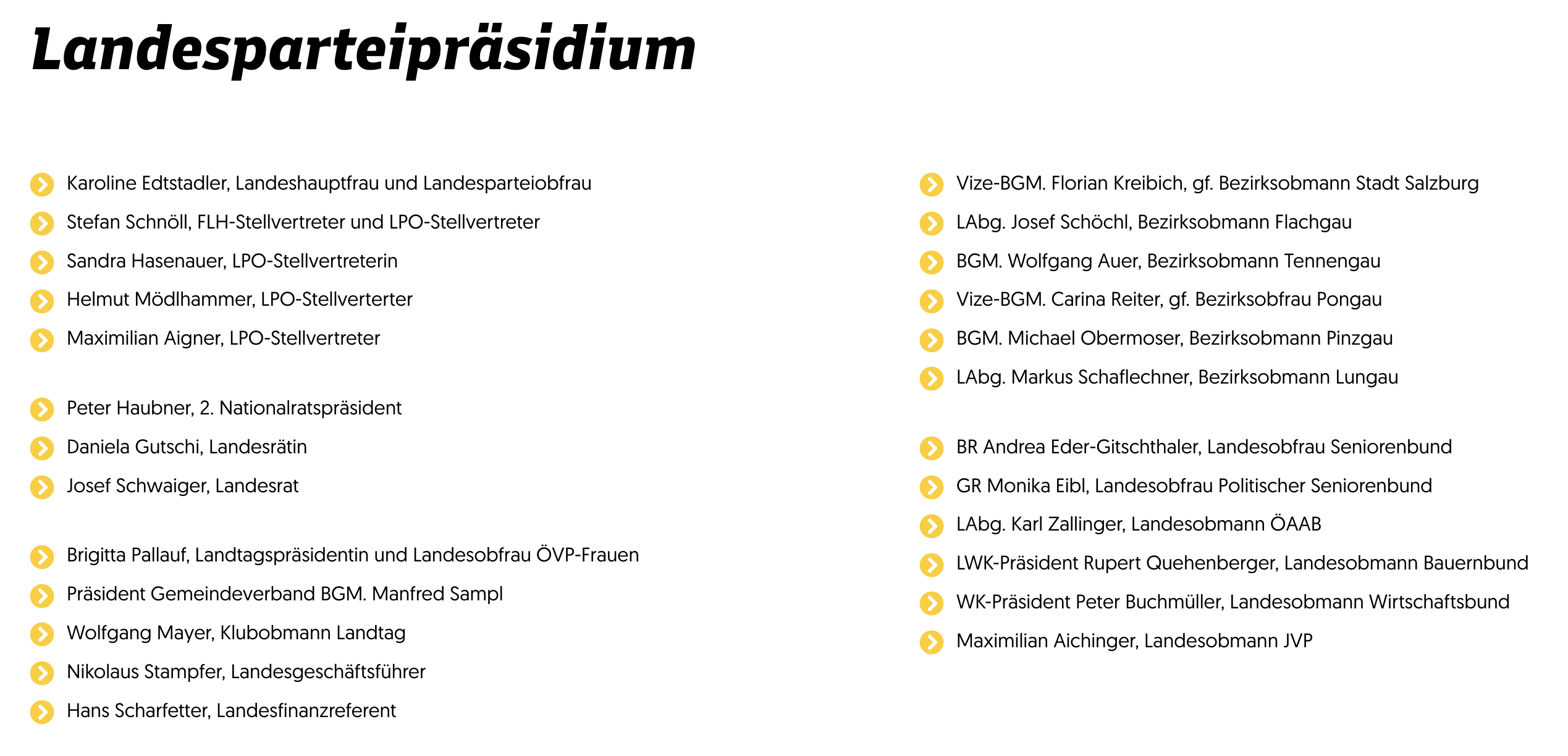ÖVP Salzburg, Landesparteipräsidium - Mitglied