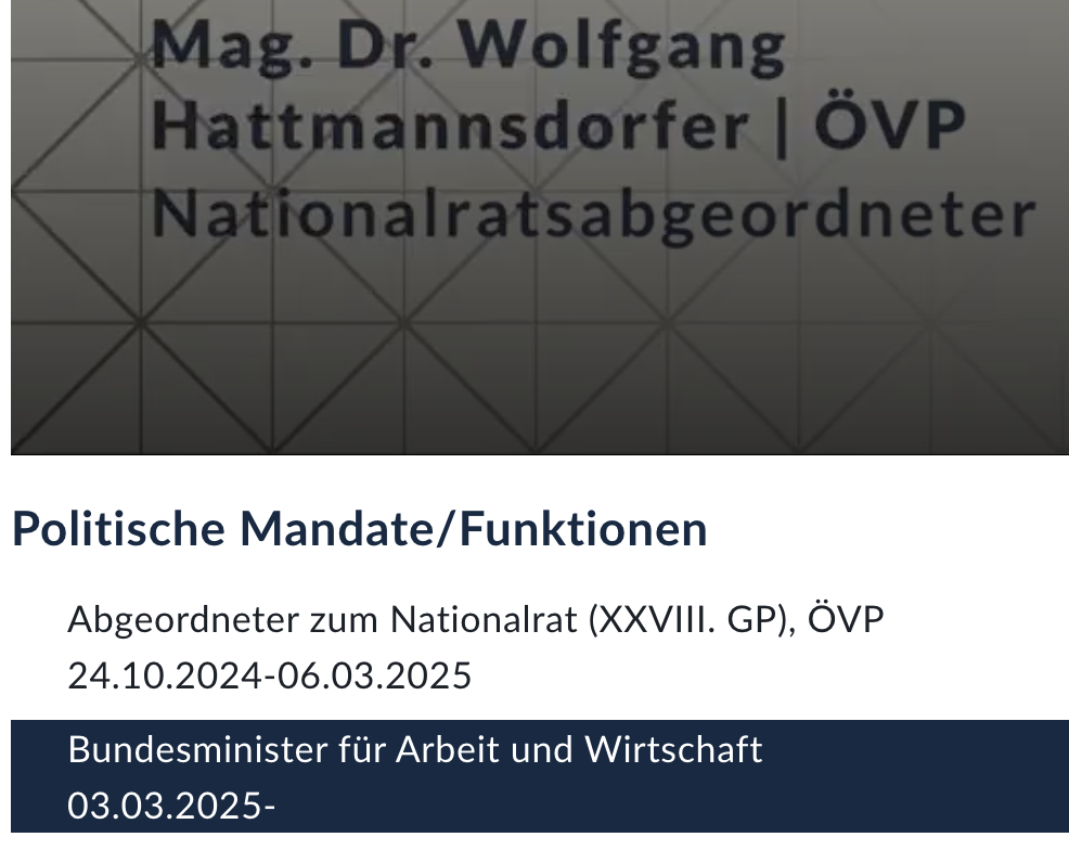 In dieser Rubrik listen wir alle historischen und aktuellen Mandate und Exekutivfunktionen im österreichischen Parlament (Nationalrat, Bundesrat und Bundesregierung), im Europaparlament, in Landtagen und Landesregierungen, in Stadt- und Gemeinderäten und in den Wiener Bezirksräten. Die Parlamentsmandate sind vollständig, alle anderen konnten nur teilweise recherchiert werden, hauptsächlich aus den Eigenangaben der PolitikerInnen.