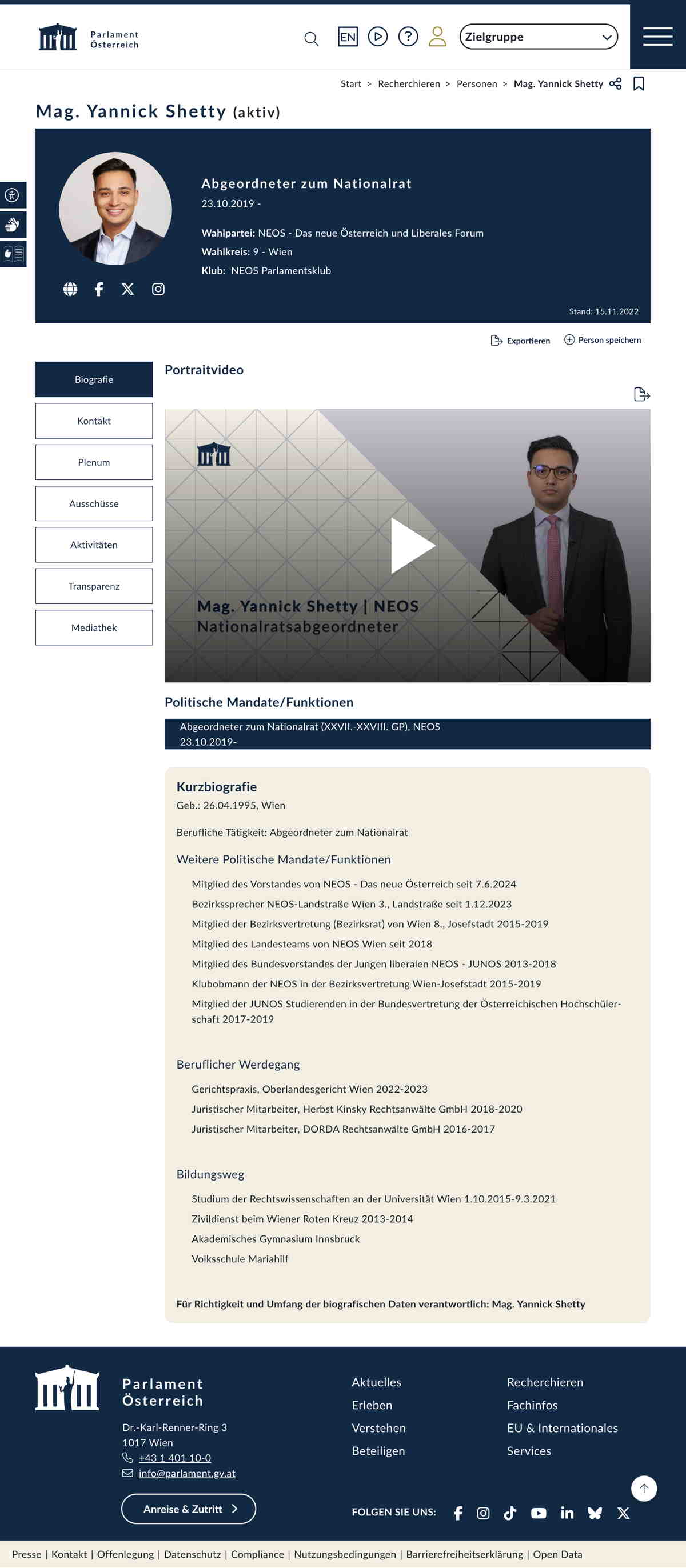 Quelle: Persönliche Seite; Parlament (Zugriff: 27.10.2025) Screenshot/Dokument: screencapture-parlament-gv-at-person-5687-2025-10-27-08_29_56.jpg