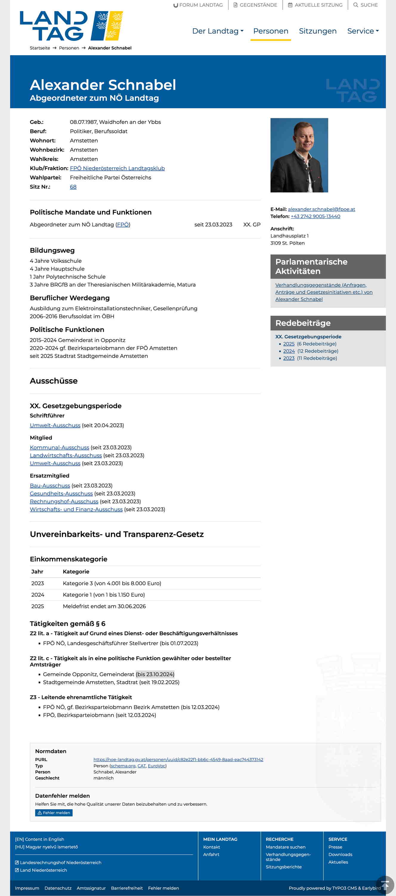 Quelle: Persönliche Seite; LTG NÖ (Zugriff: 15.07.2025) Screenshot/Dokument: screencapture-noe-landtag-gv-at-personen-alexander-schnabel-2025-07-15-15_00_26.jpg