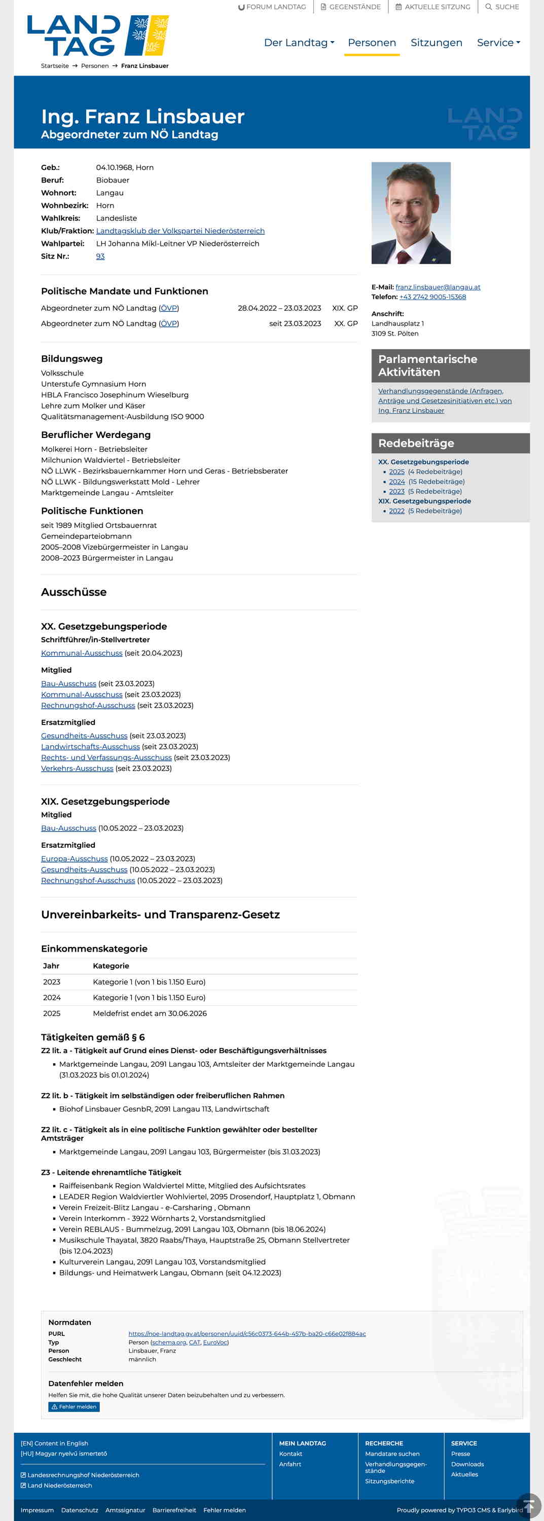 Quelle: Persönliche Seite; LTG NÖ (Zugriff: 15.07.2025) Screenshot/Dokument: screencapture-noe-landtag-gv-at-personen-franz-linsbauer-2025-07-15-13_15_26.jpg