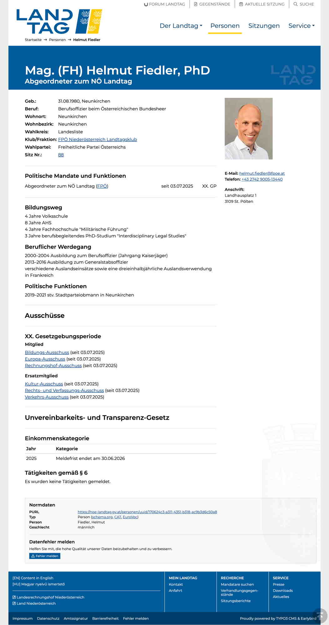 Quelle: Persönliche Seite; LTG NÖ (Zugriff: 15.07.2025) Screenshot/Dokument: screencapture-noe-landtag-gv-at-personen-helmut-fiedler-2025-07-15-09_02_16.jpg