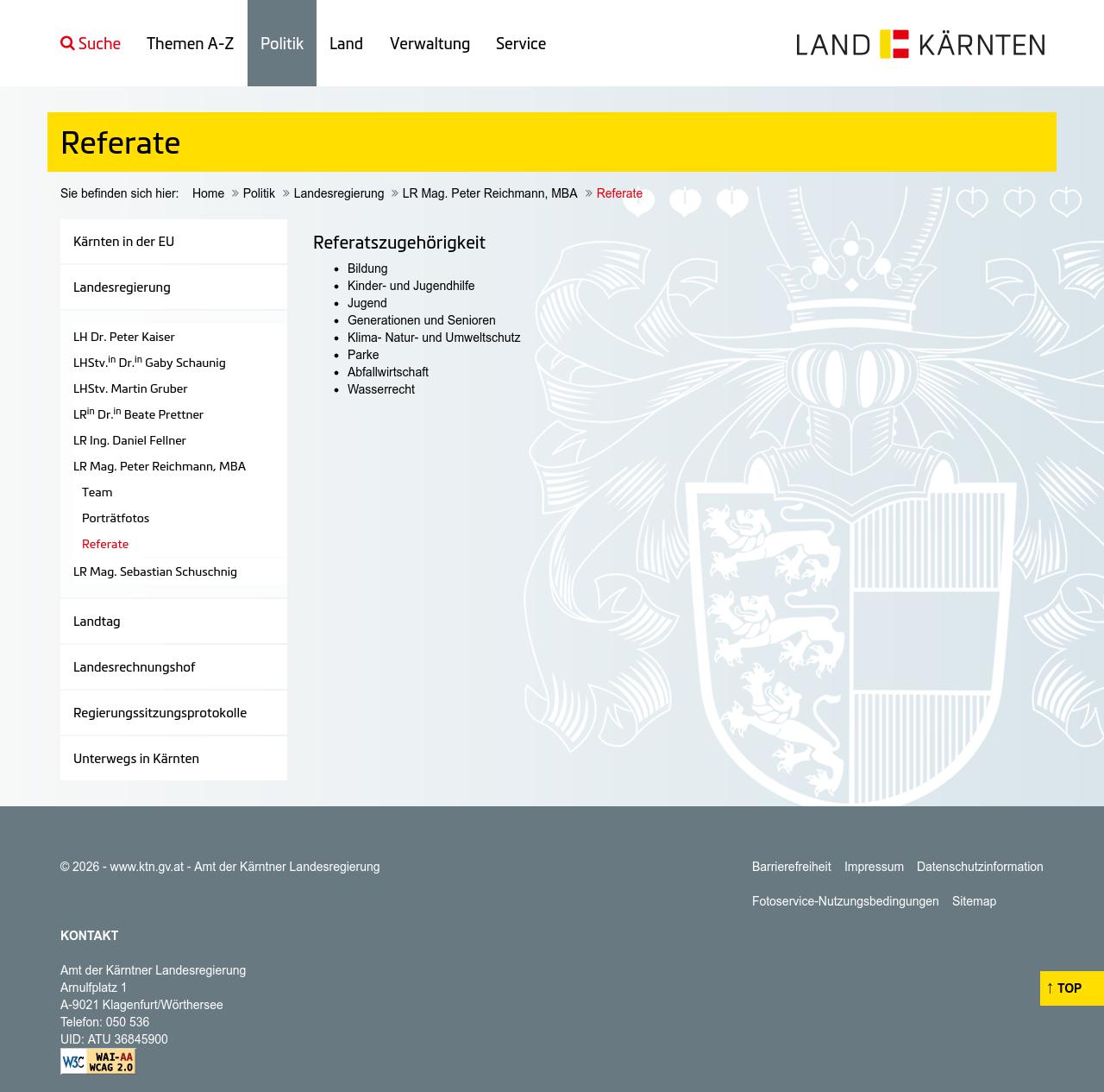 Quelle: Persönliche Seite; Land Kärnten (Zugriff: 23.10.2025) Screenshot/Dokument: www.ktn.gv.at_2025-10-23_9600.jpg