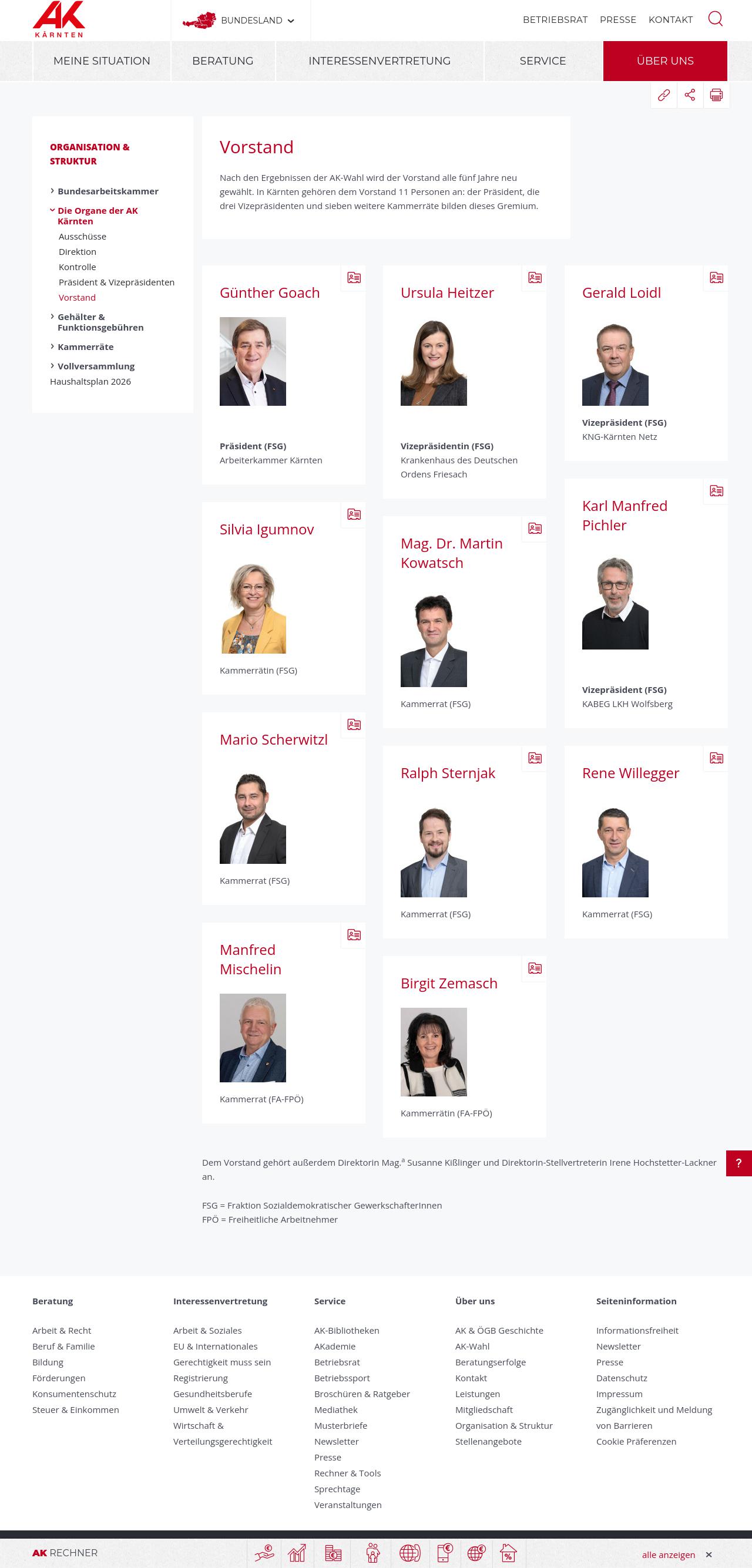 Arbeiterkammer Kärnten; Vorstand